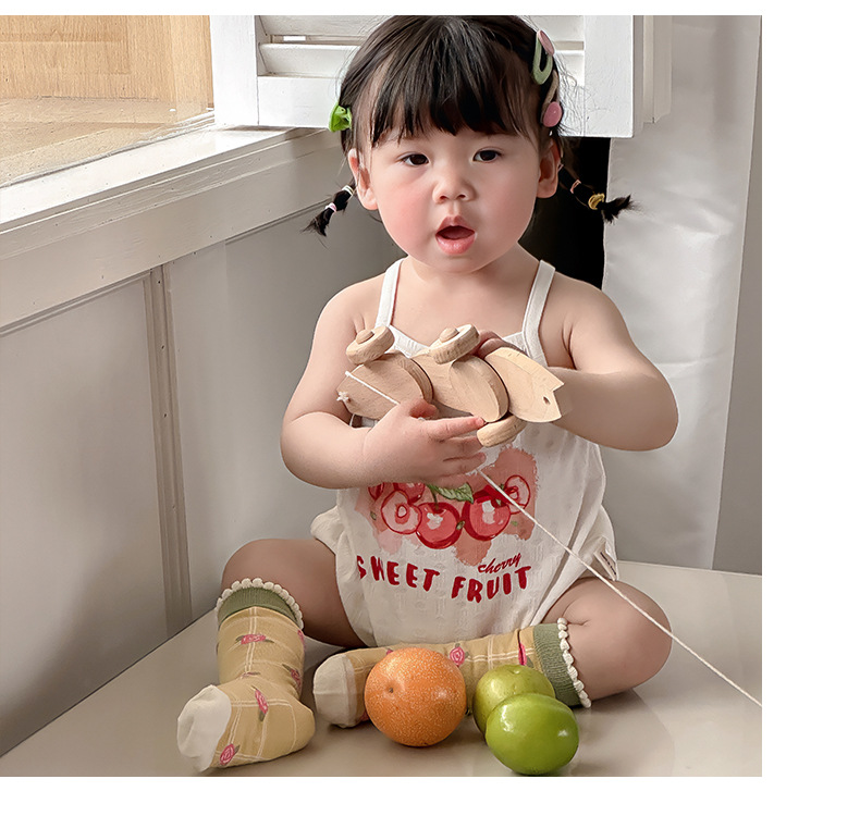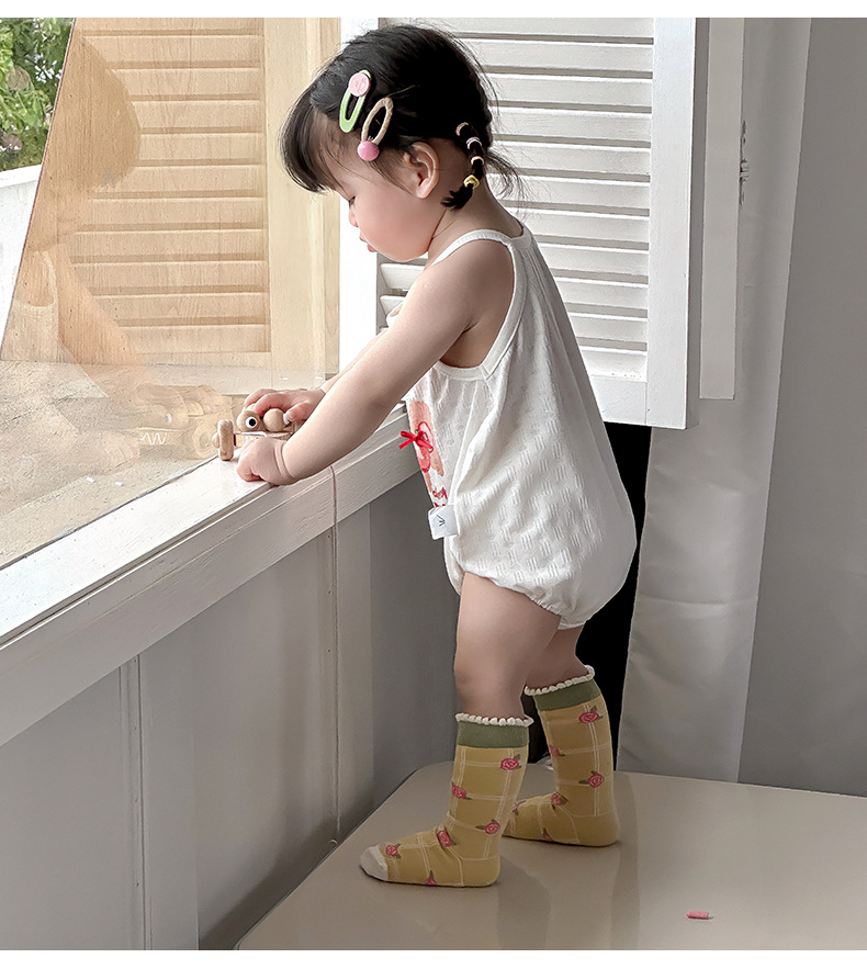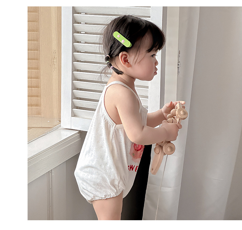 2024년 여름 여아 아기 일본풍 만화 얇고 통기성 좋은 캐주얼 레터 프린트 멜빵 바디수트 해외 직수입스토어 가기
