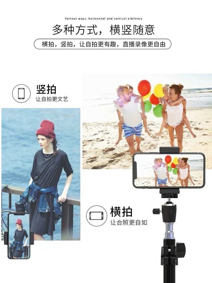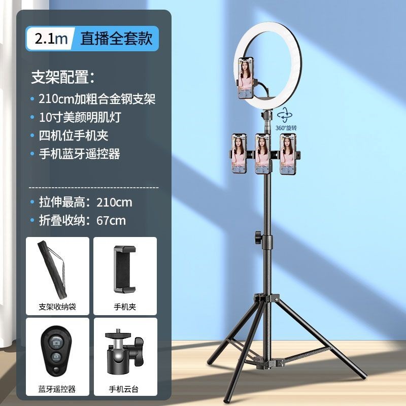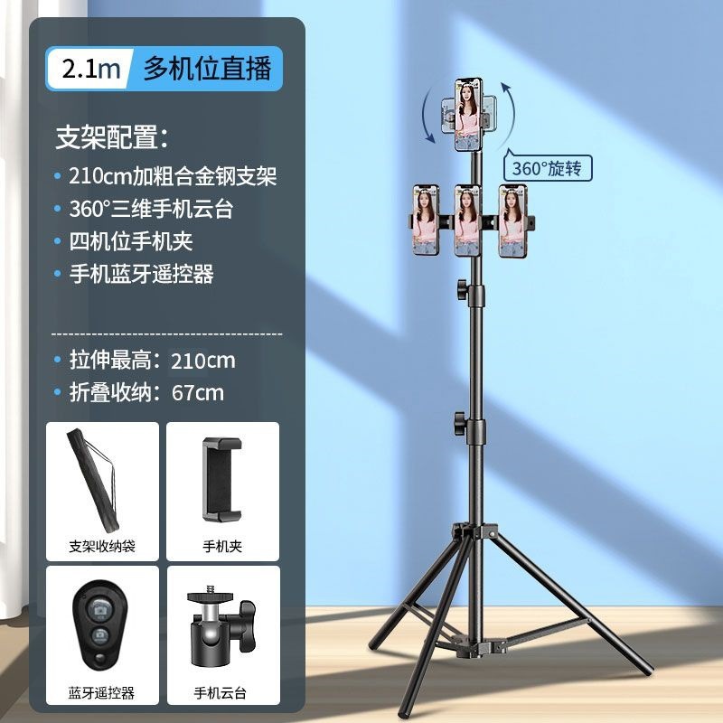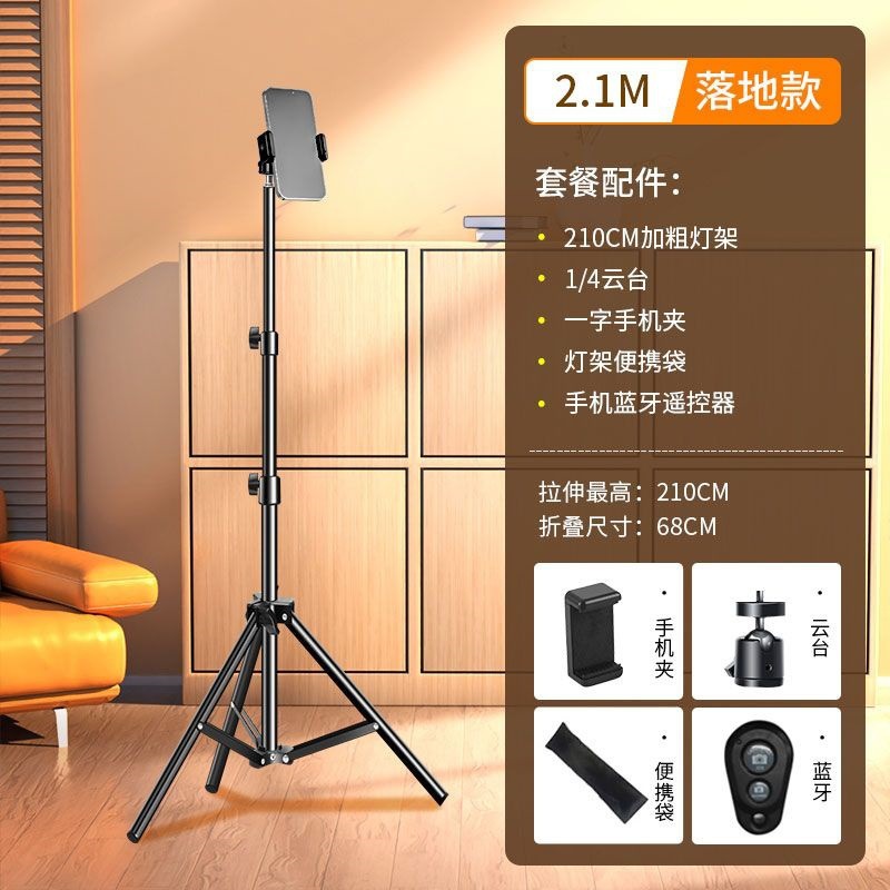 휴대 전화 촬영 라이브 방송 브래킷 플로어 램프 2.1 미터 편리한 텔레스코픽 삼각대 셀카 레버 2 in 1 채우기 조명 2 미터