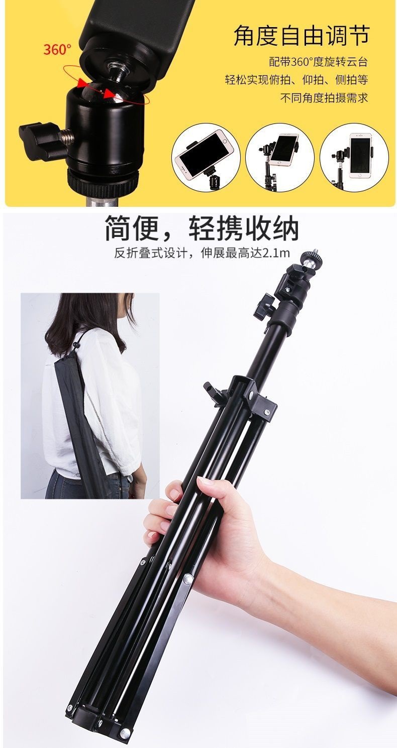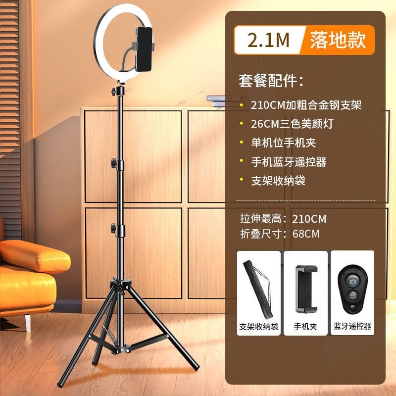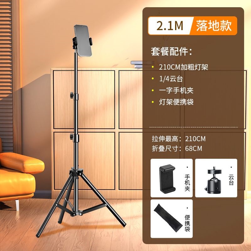휴대 전화 촬영 라이브 방송 브래킷 플로어 램프 2.1 미터 편리한 텔레스코픽 삼각대 셀카 레버 2 in 1 채우기 조명 2 미터스토어 가기