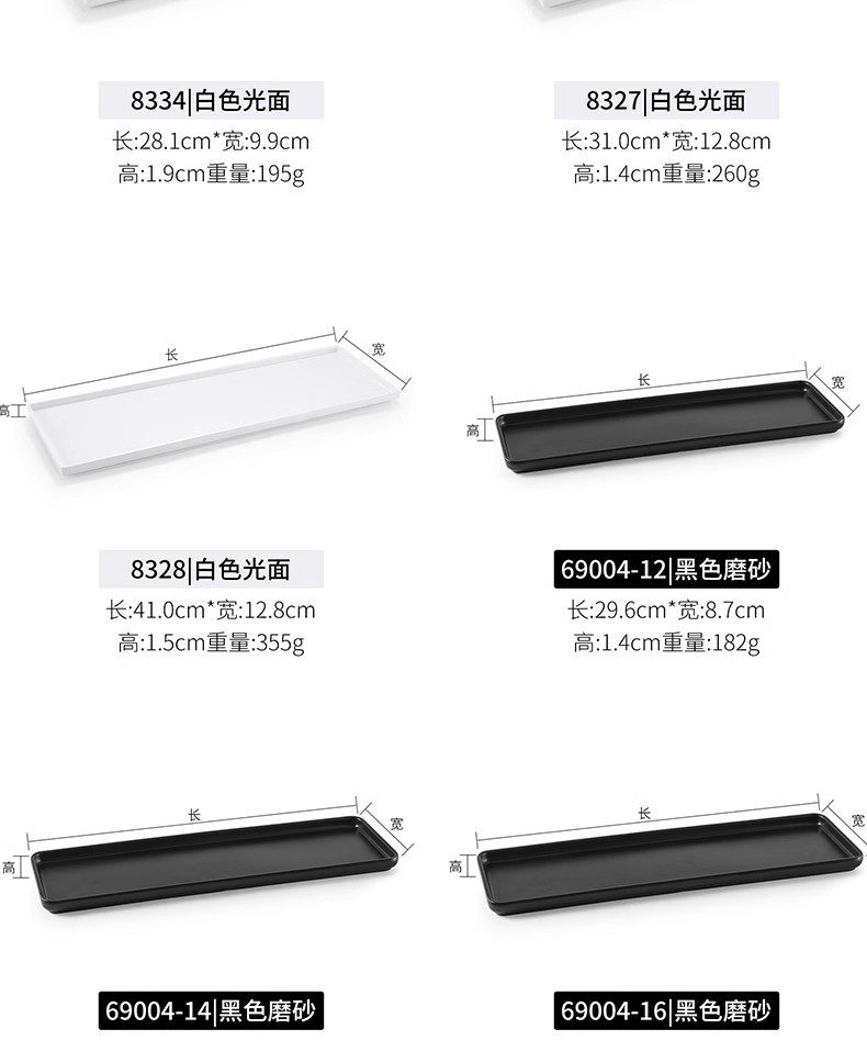 멜라민 얕은 판 평판 일본식 좁은 긴 스트립 플라스틱 트레이 직사각형 스시 바베큐 판 상업