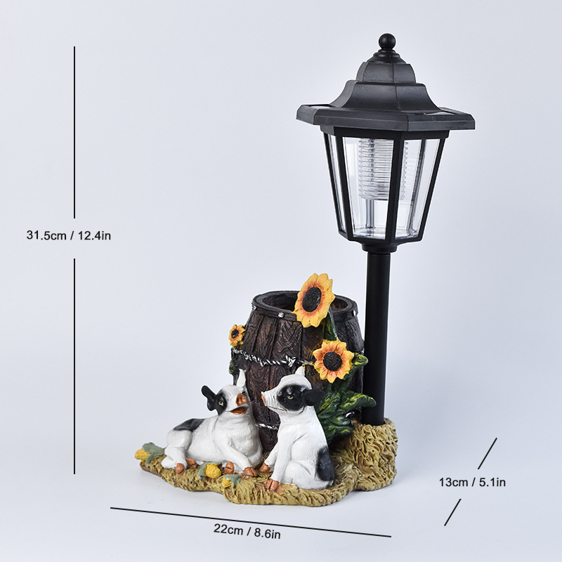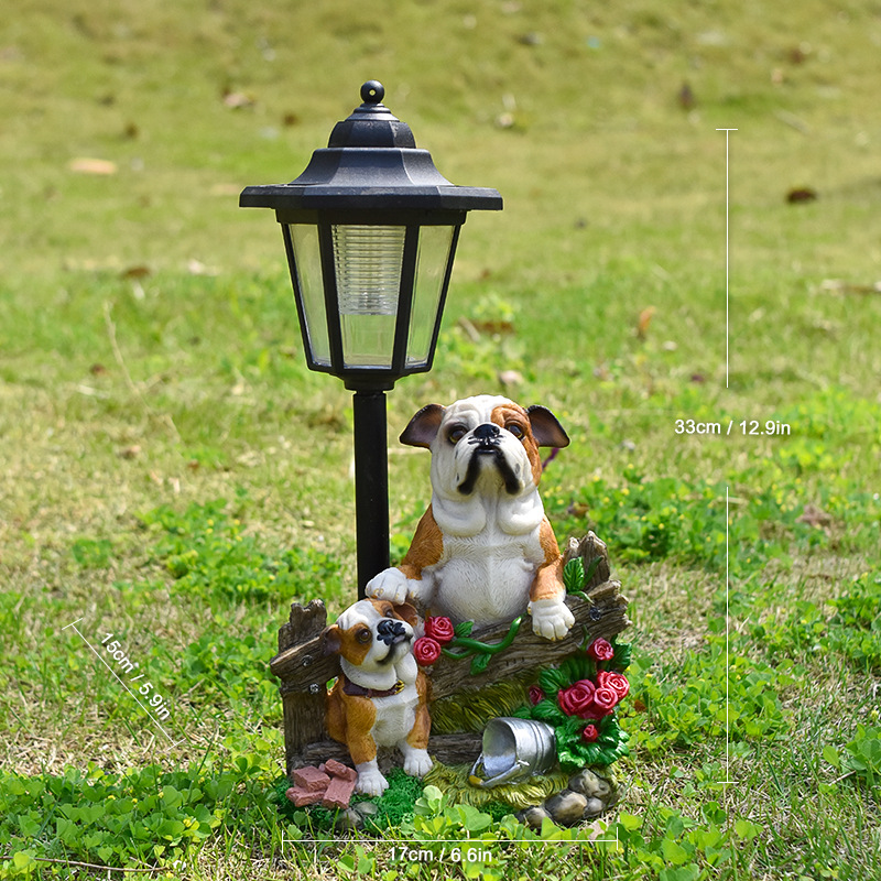 국경 새로운 정원 태양 빛 강아지 지방 장식품 정원 장식 조각 수지 공예 선물