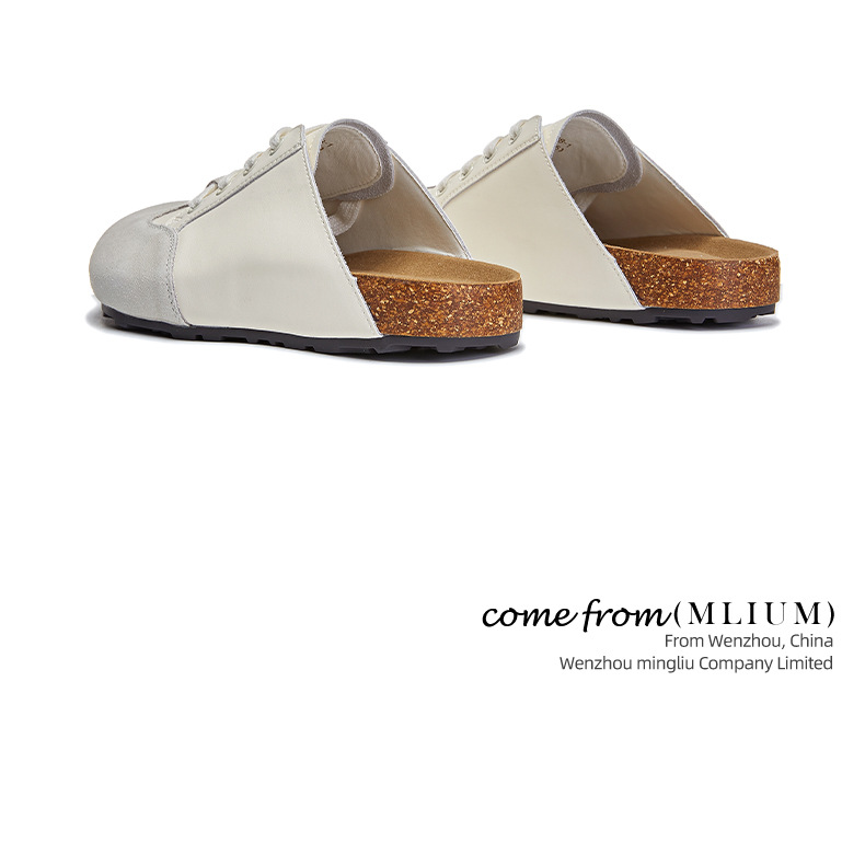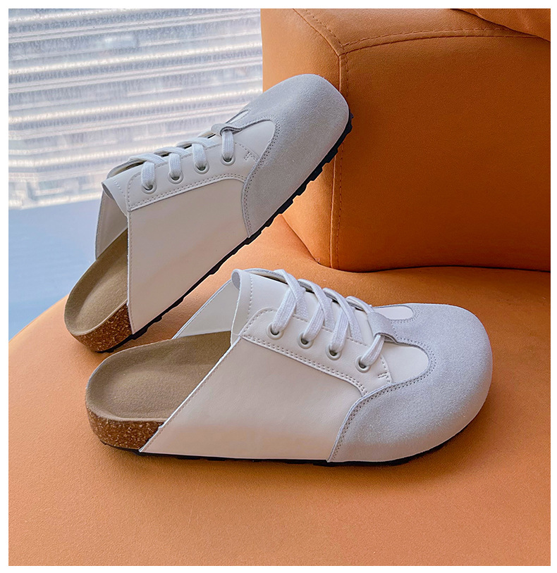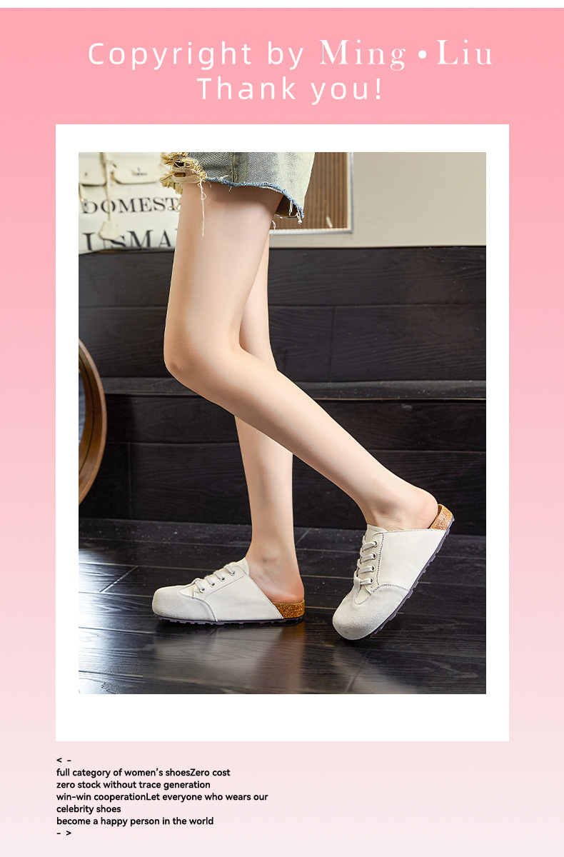 정품 가죽 슬리퍼 2024 여름 새로운 도착 아웃웨어 패션 하프 슬리퍼 캐주얼 올 매치 플랫 샌들 유행 여성 신발스토어 가기