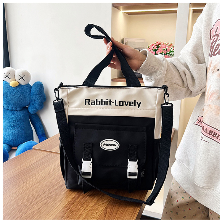 새로운 캔버스 가방 여성 싱글 어깨 대용량 핸드백 클래스 학생 올 매치 컬러 콘트라스트 스쿨백 크로스 바디 백