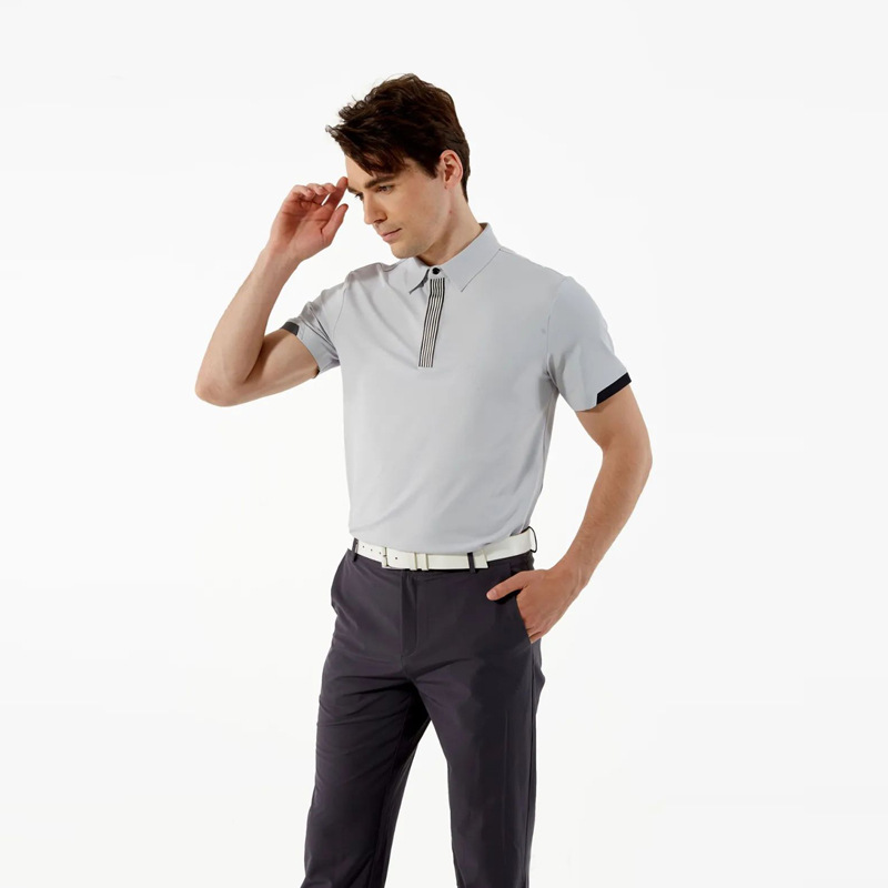 • 흰색 회색 줄무늬 인쇄 남성 반팔