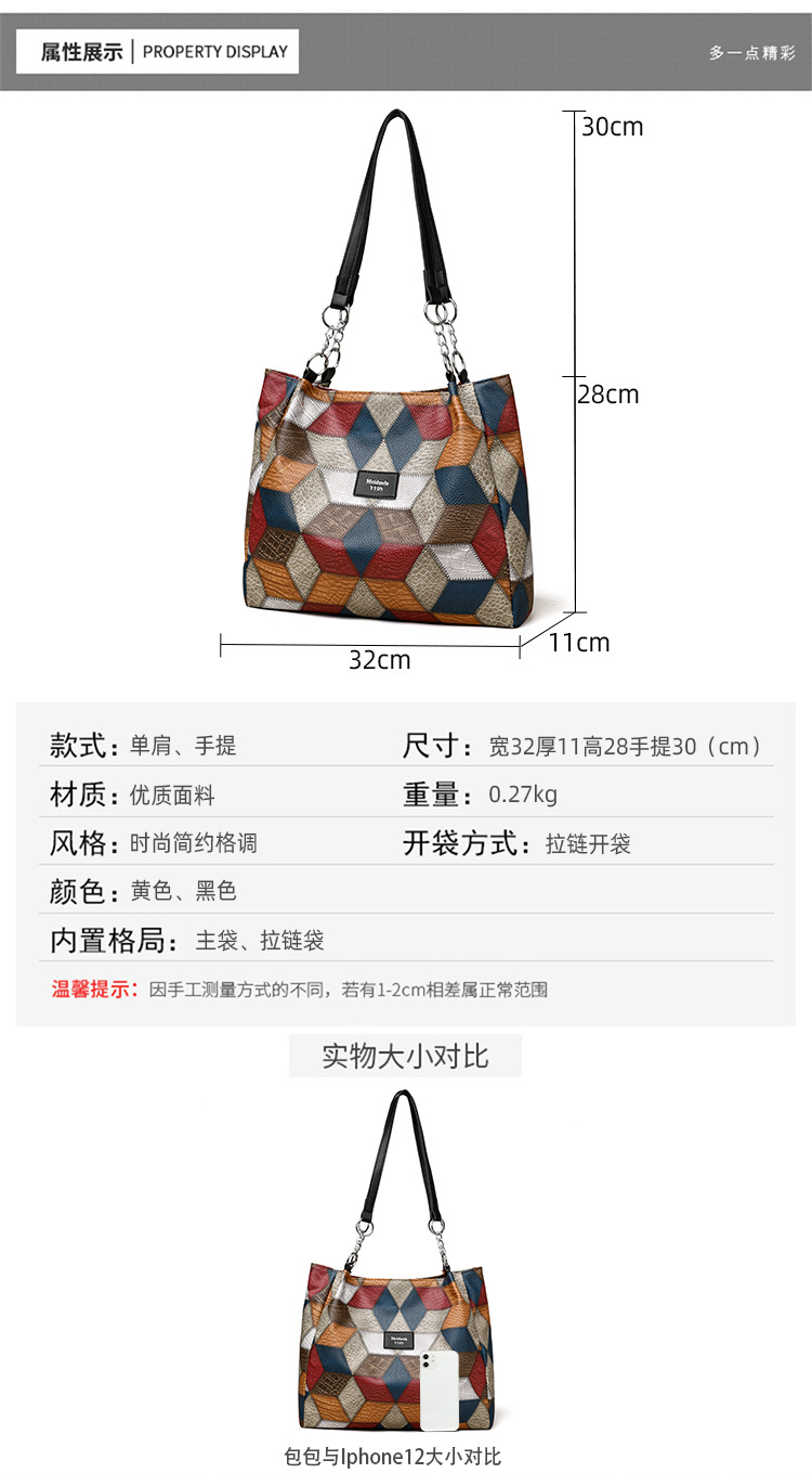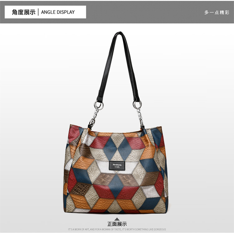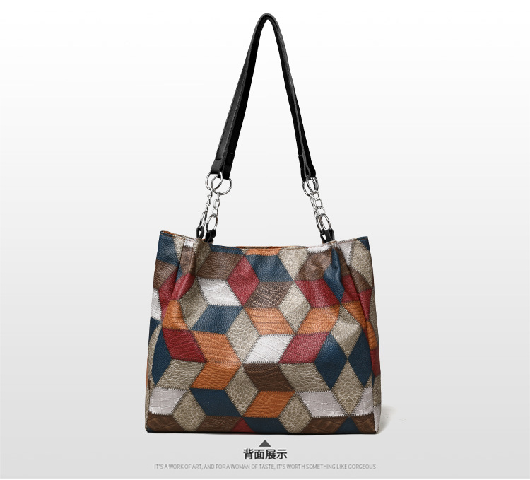 한국판 신상 레트로 다이아몬드 패턴 배색 여성 가방, 다용도 토트백, 대용량 숄더백, 체인 핸드백, 해외배송스토어 가기