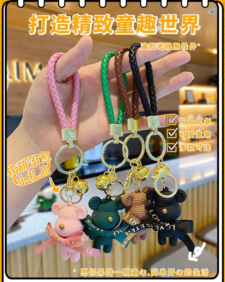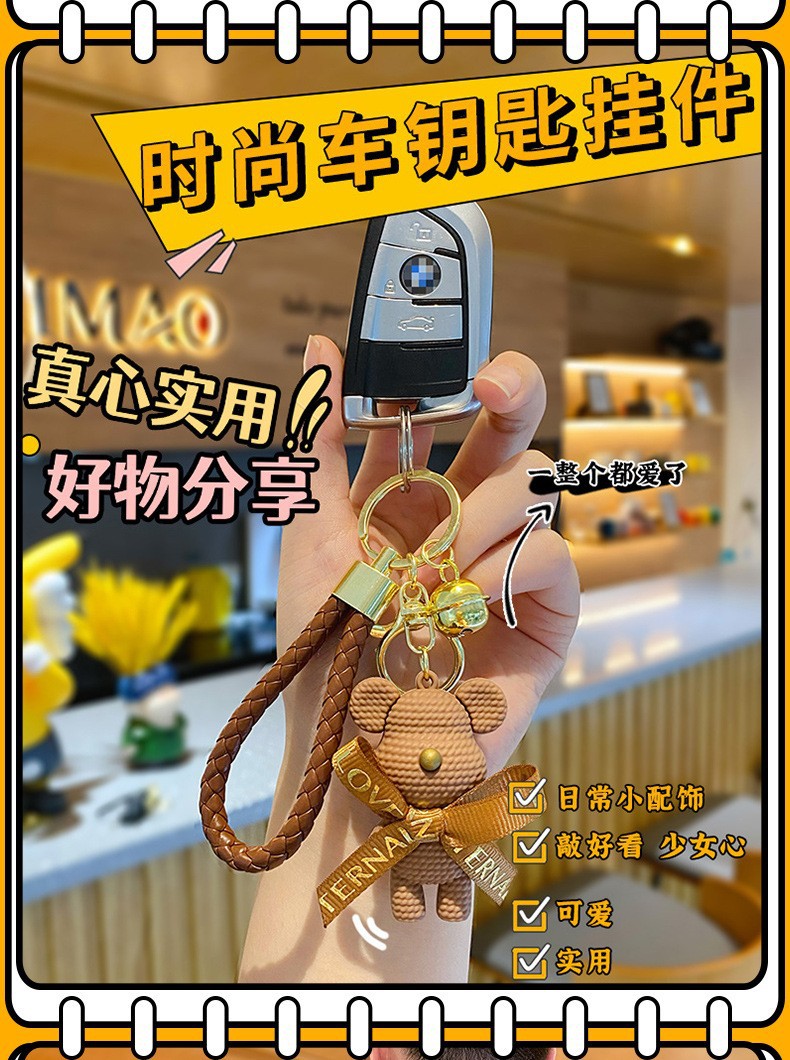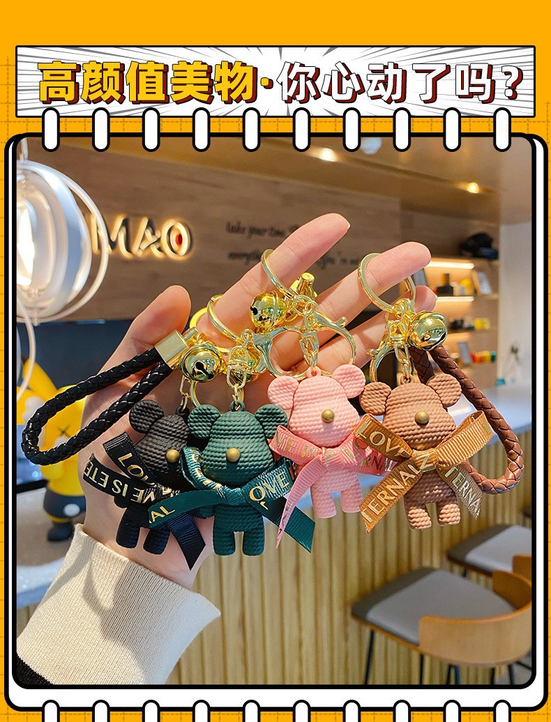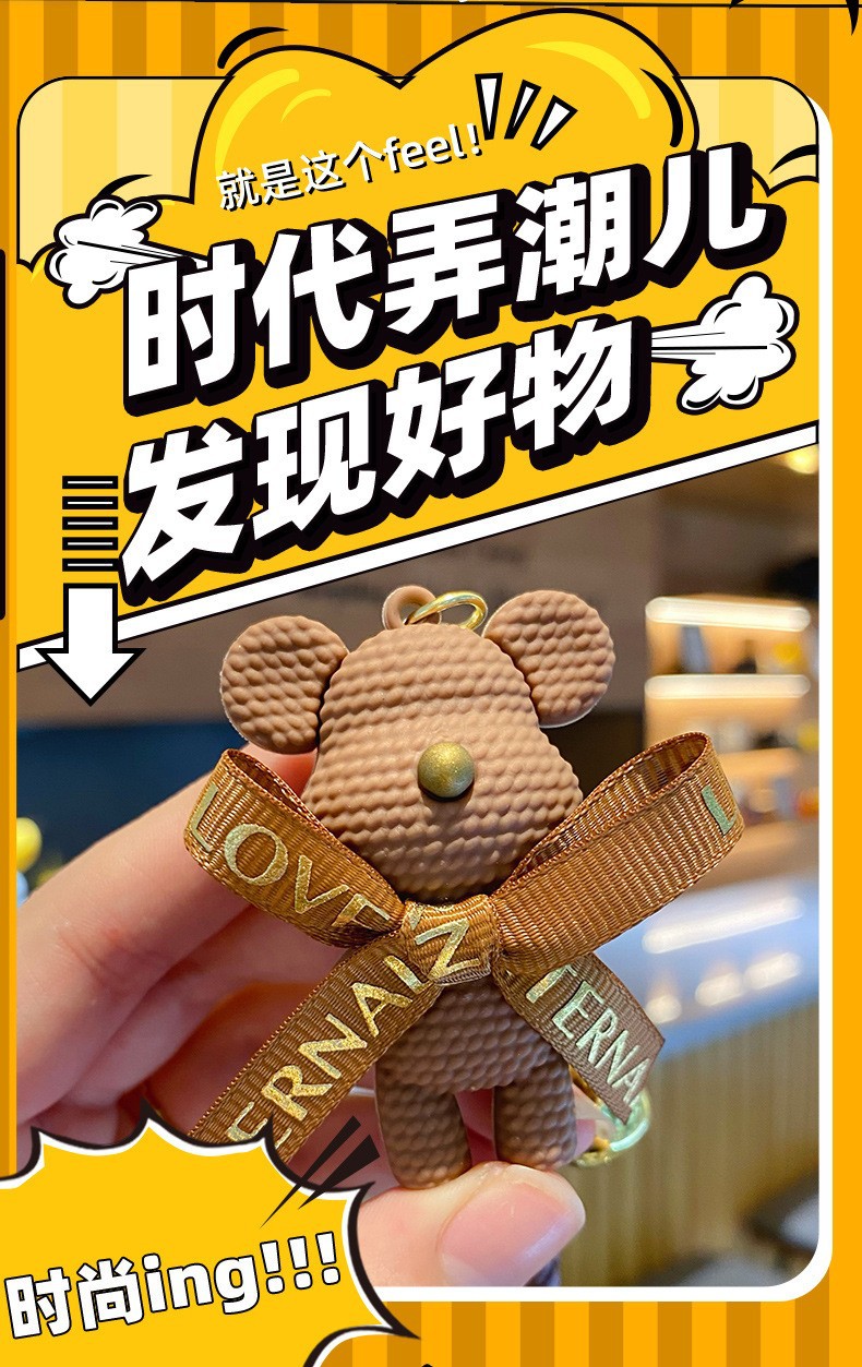 국경을 넘는 인기 상품 리본 곰돌이 열쇠고리 귀여운 인형 가방 장식 자동차 열쇠고리 선물