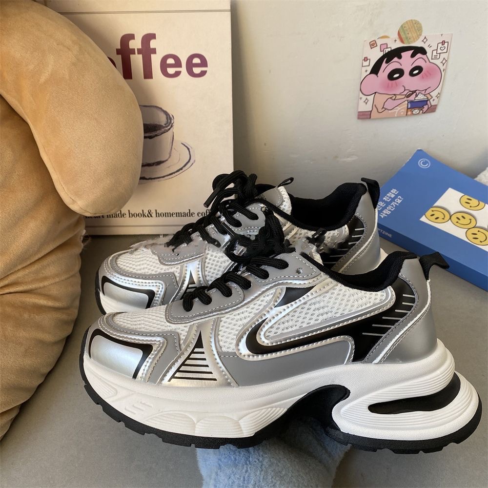 여성용 스트리트 스타일 두꺼운 밑창 아빠 신발 2025 봄 여름 신상 레트로 높이 증가 경량 통기성 캐주얼 다용도 운동화 트렌드스토어 가기