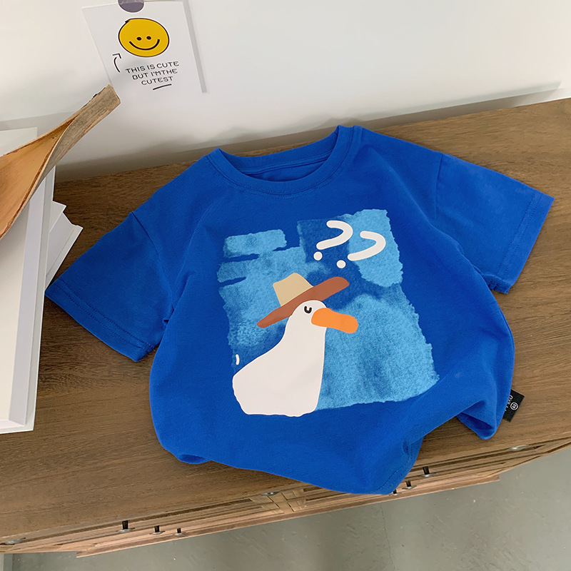 남학생 티셔츠 여름 만화 클라인 블루 아동복 어린이 느슨한 반팔 퓨어 코튼 웨스턴 스타일 잘 생긴 올매치 트렌디