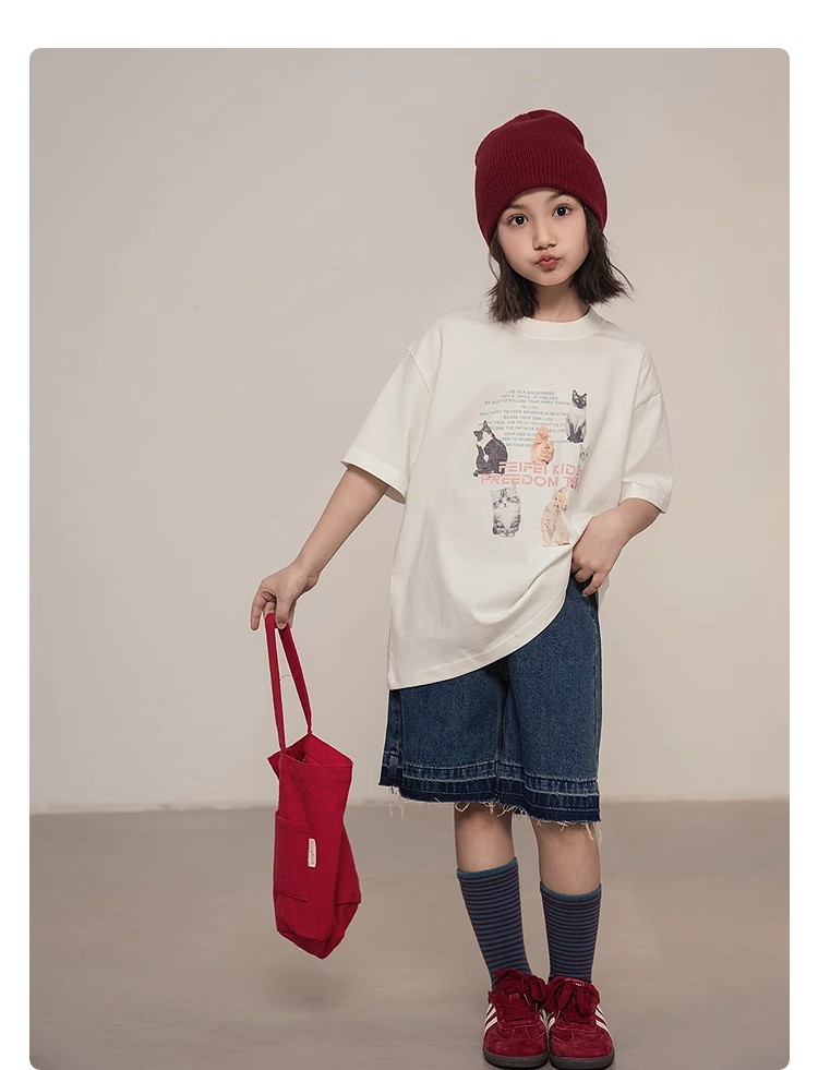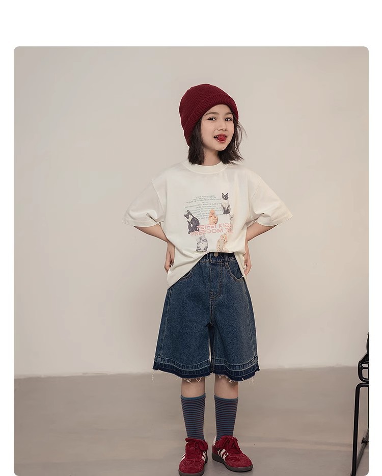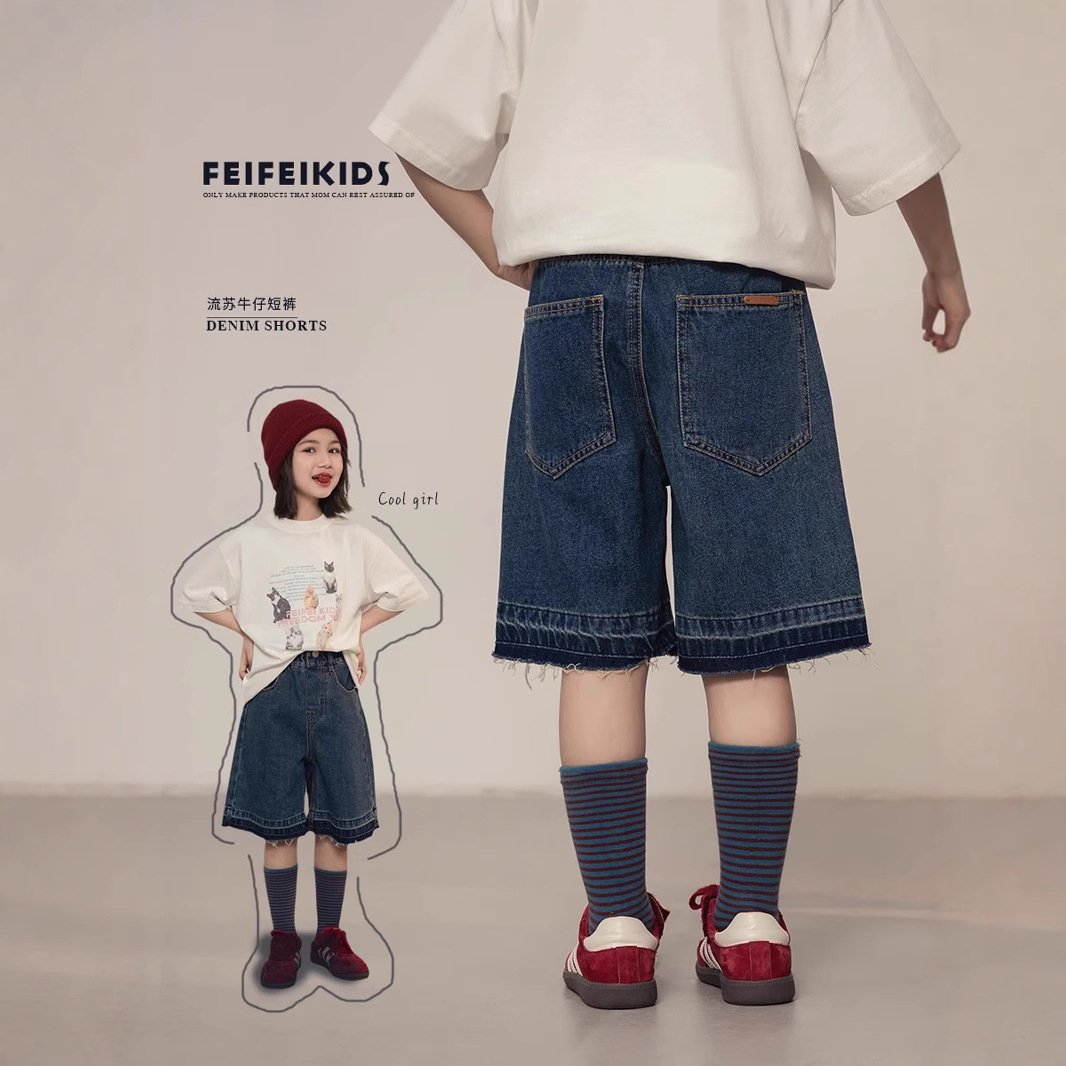 여자 데님 바지 2024 여름 새 여아 느슨한 반바지 어린이 중학생 캐주얼 바지스토어 가기