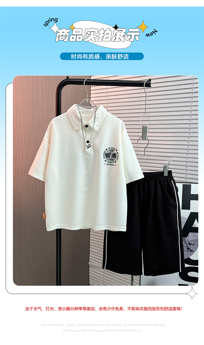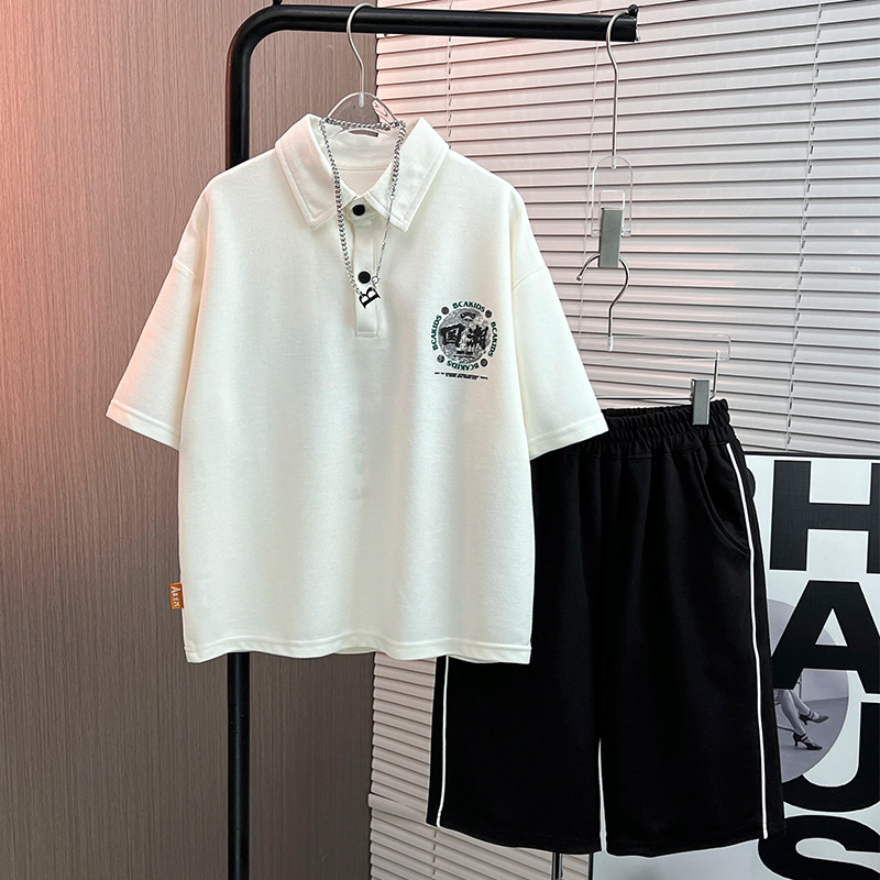 전국 패션 여름 폴로 셔츠 반팔 세트 2024 새로운 남성 중대형 어린이 패션 브랜드 서양식 얇은 투피스 아동복