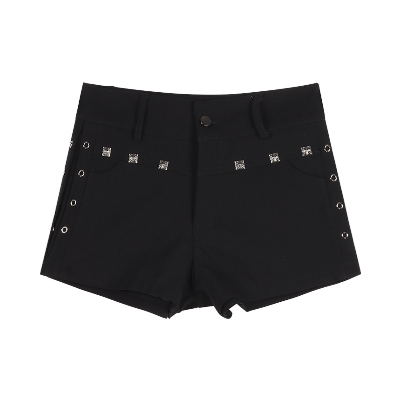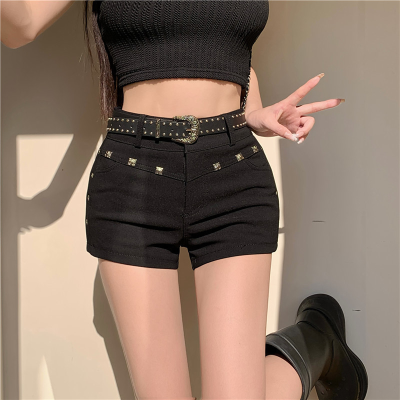 리벳 데님 반바지 여성 여름 작은 뜨거운 소녀 높은 허리 스트레이트 바지 Y2K 슬림 핏 캐주얼 핫 팬츠