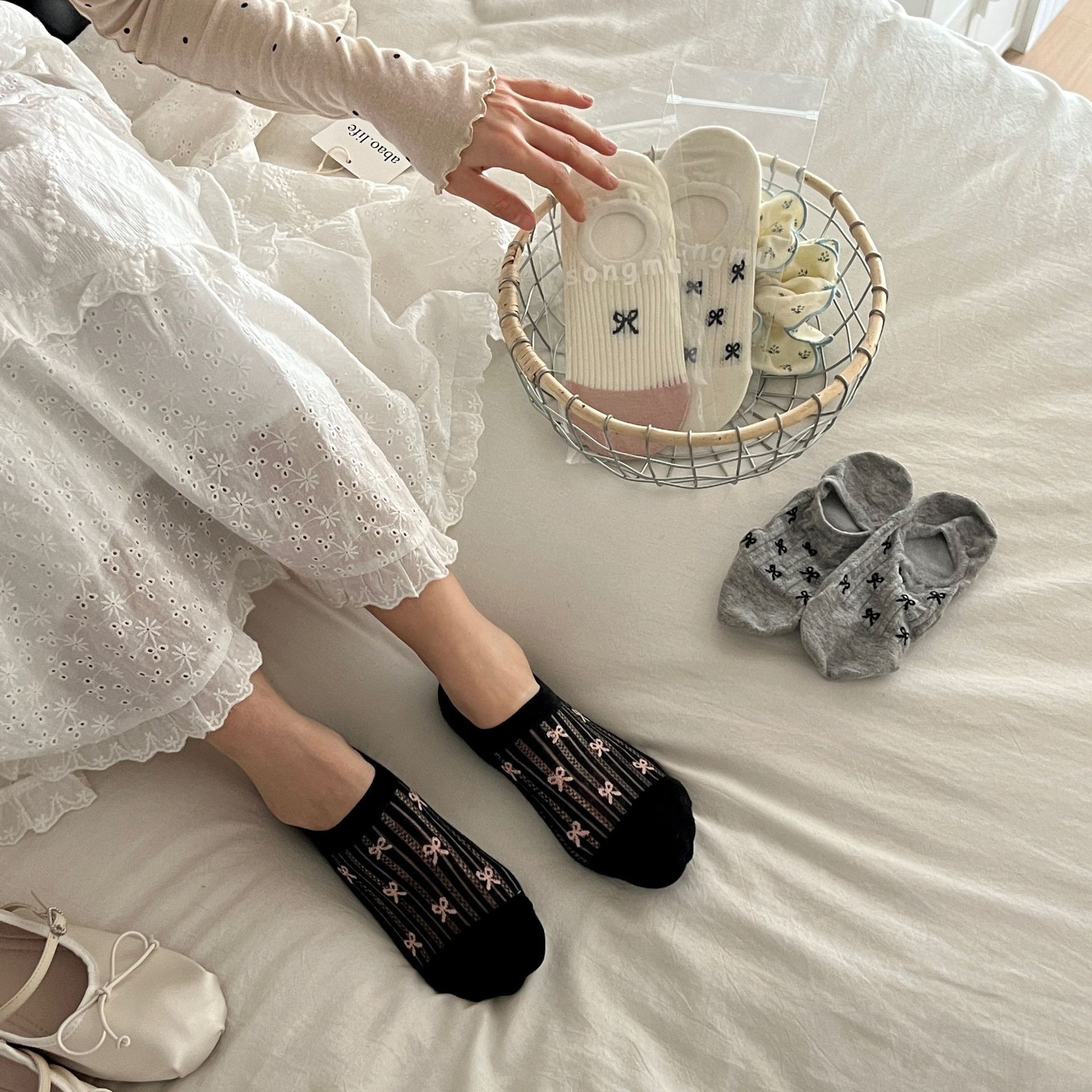 일본식 여름 충격 양말 여성용 양말 보트 양말 보이지 않는 양말 귀여운 활 메쉬 코튼 양말 얇은스토어 가기