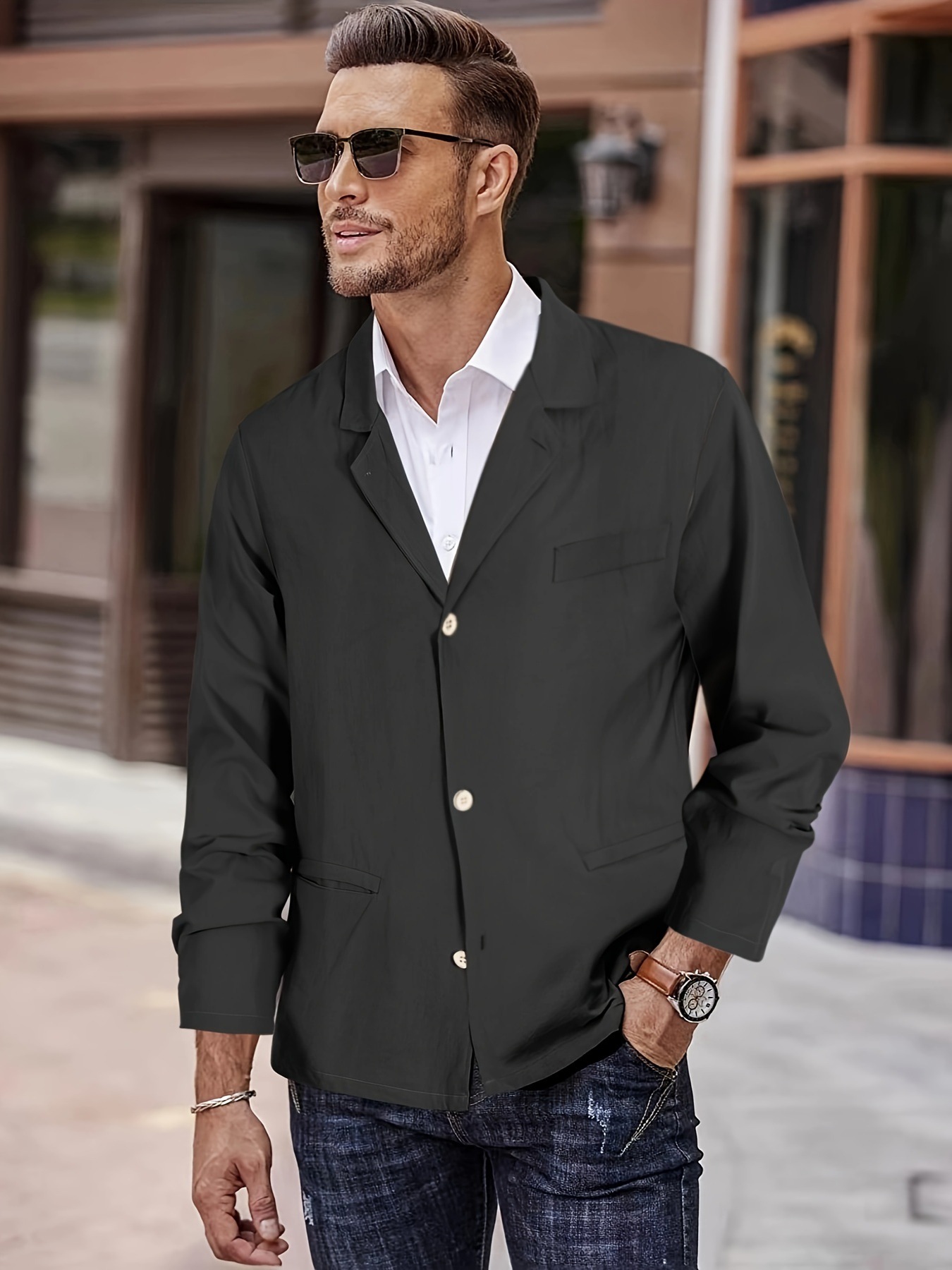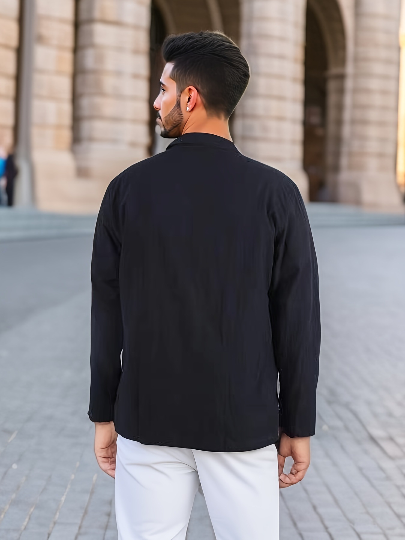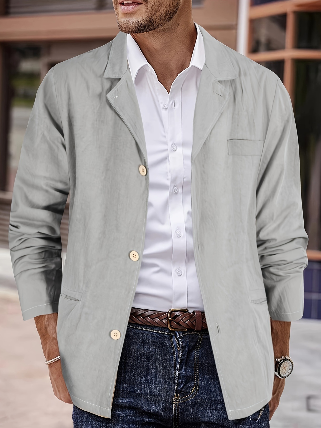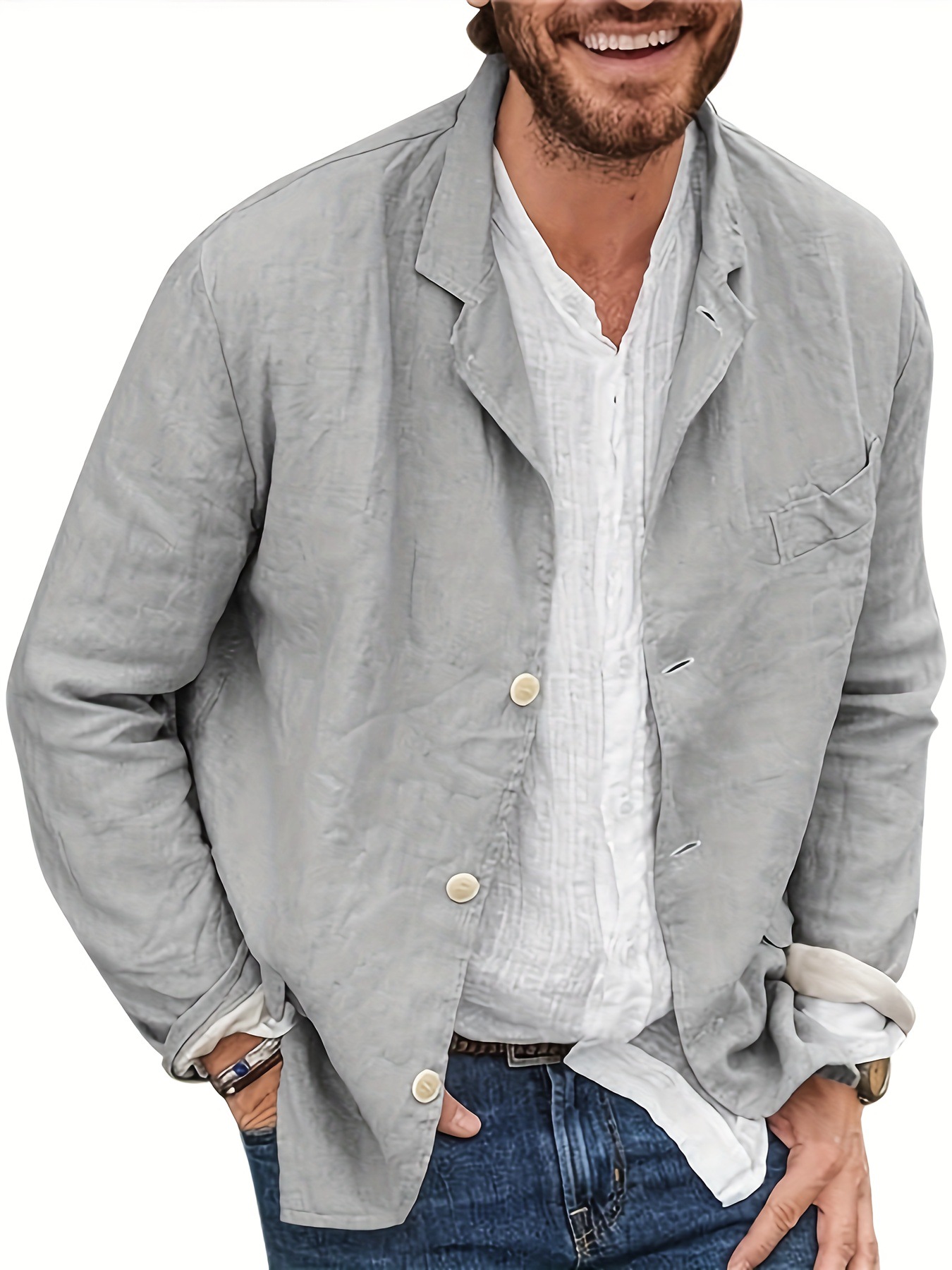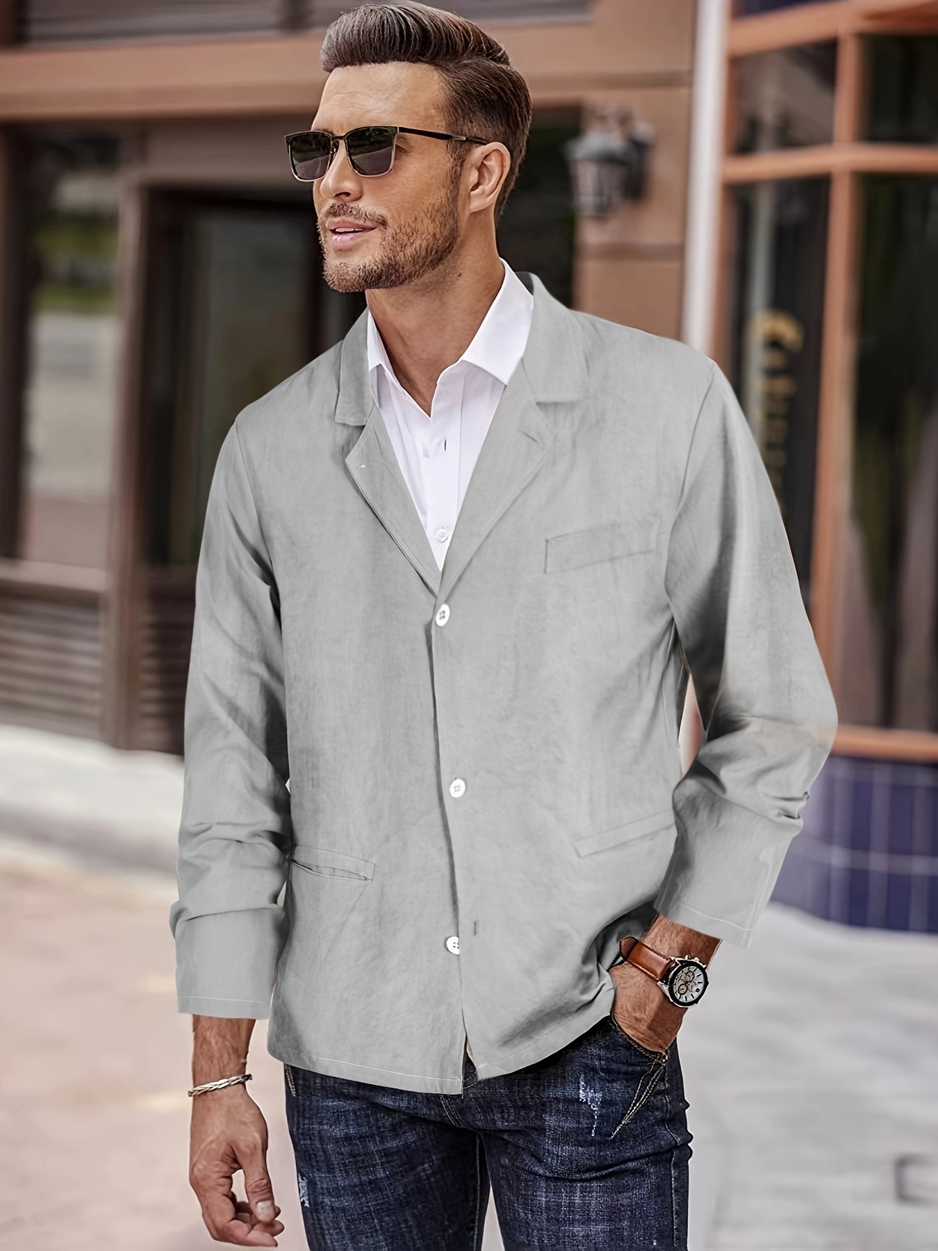 국경 간 남성 유럽과 미국의 아마존 남성 재킷 인기 솔리드 컬러 코튼과 린넨 패션 캐주얼 휴가 남성상의스토어 가기