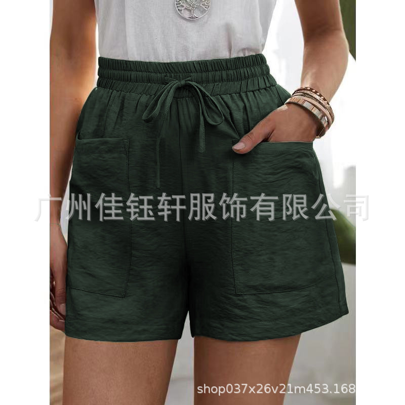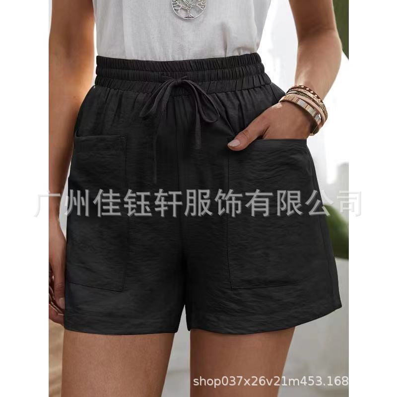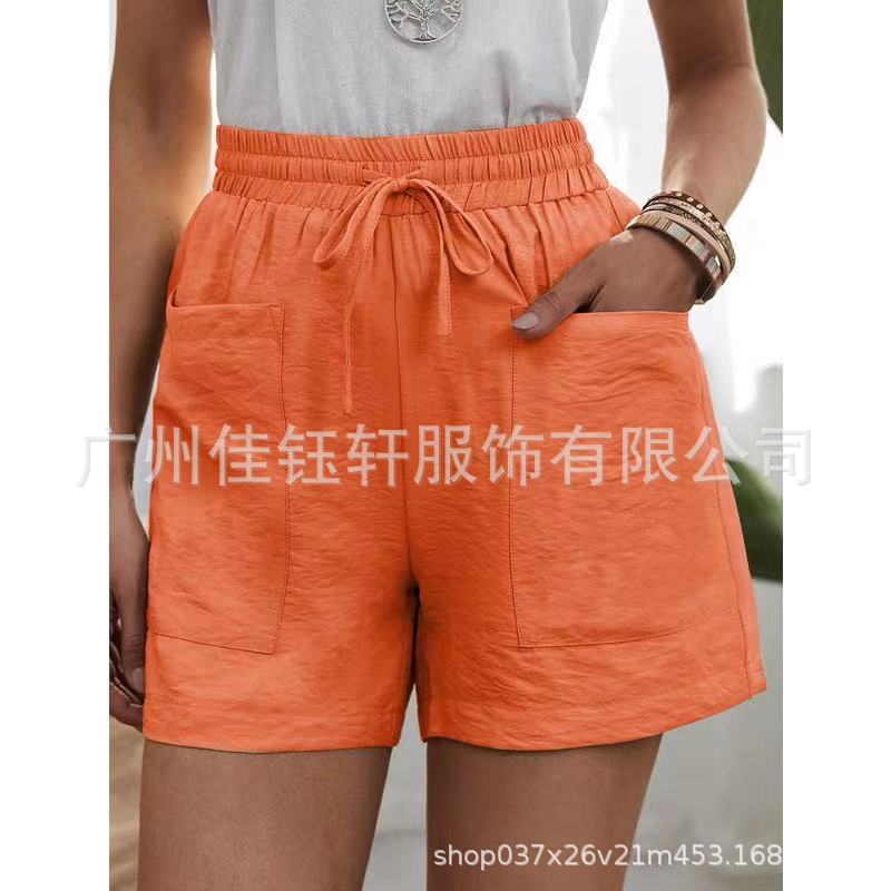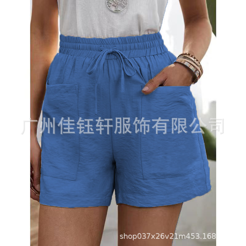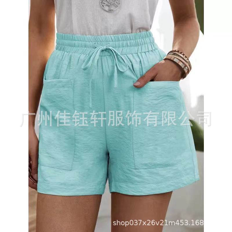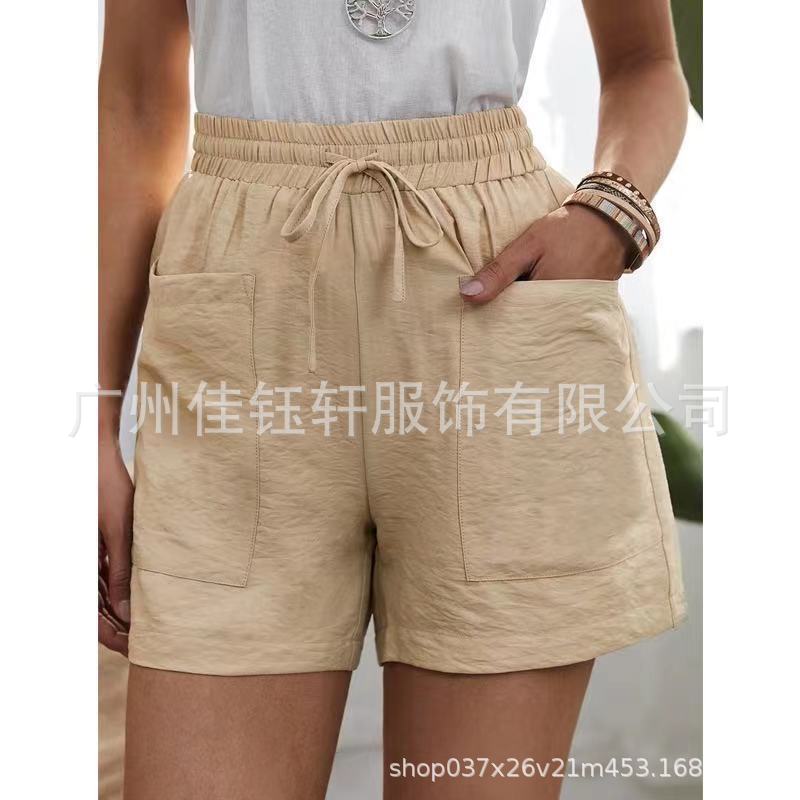 유럽과 미국의 국경 간 소원 여름 여성의 새로운 느슨한 캐주얼 반바지 포켓 솔리드 컬러 대형 하이 웨이스트 반바지스토어 가기