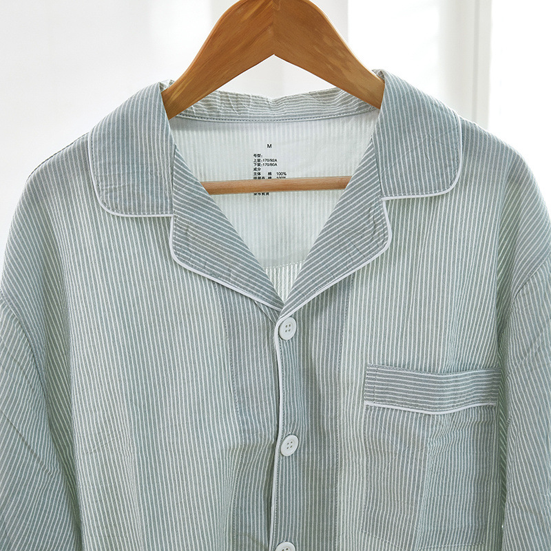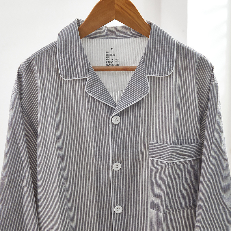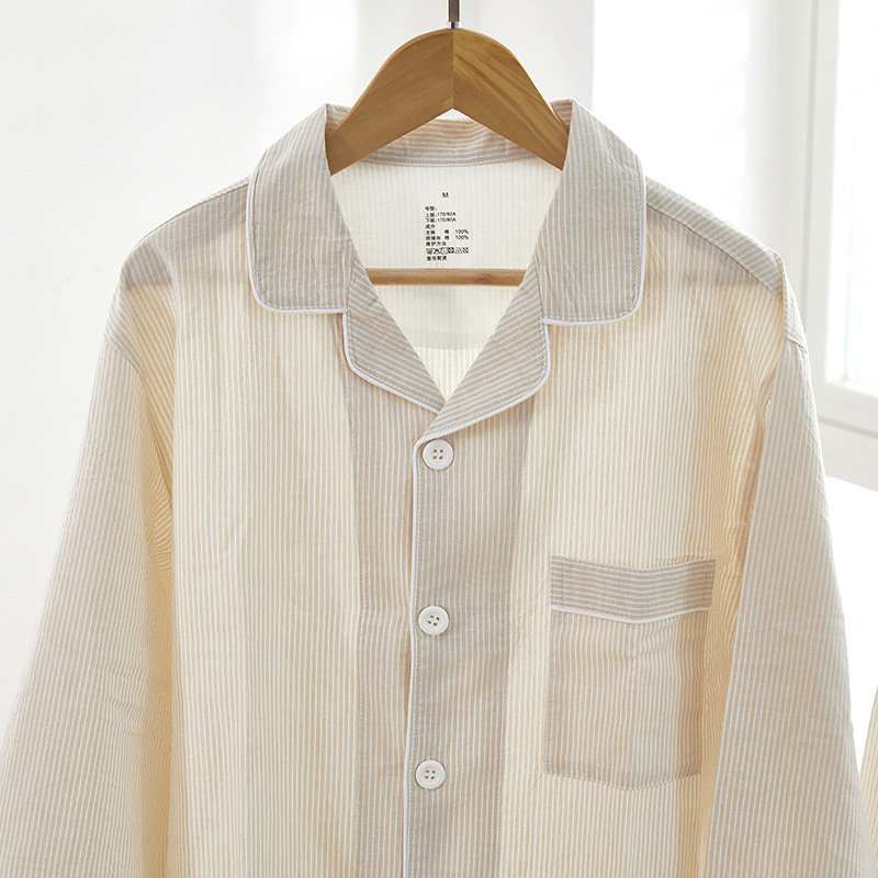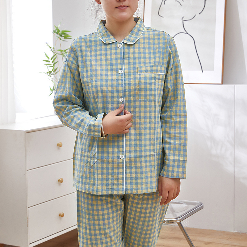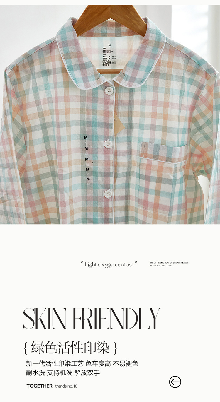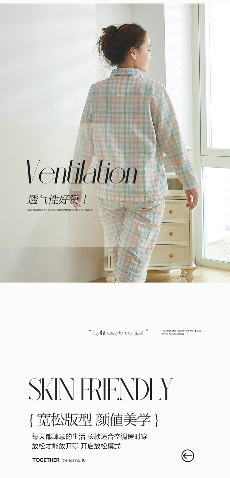 MUJI 일본식 퓨어 코튼 파자마 여성용 긴팔 체크 무늬 봄 및 여름 얇은 면 홈 의류 남성용스토어 가기