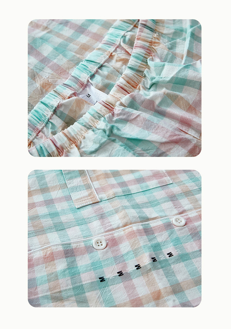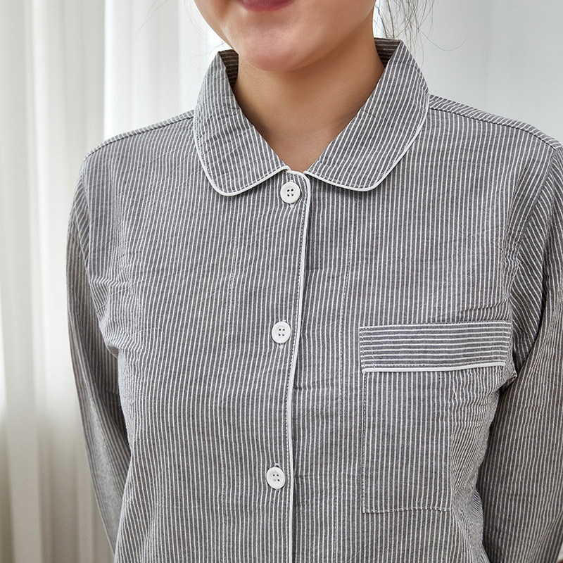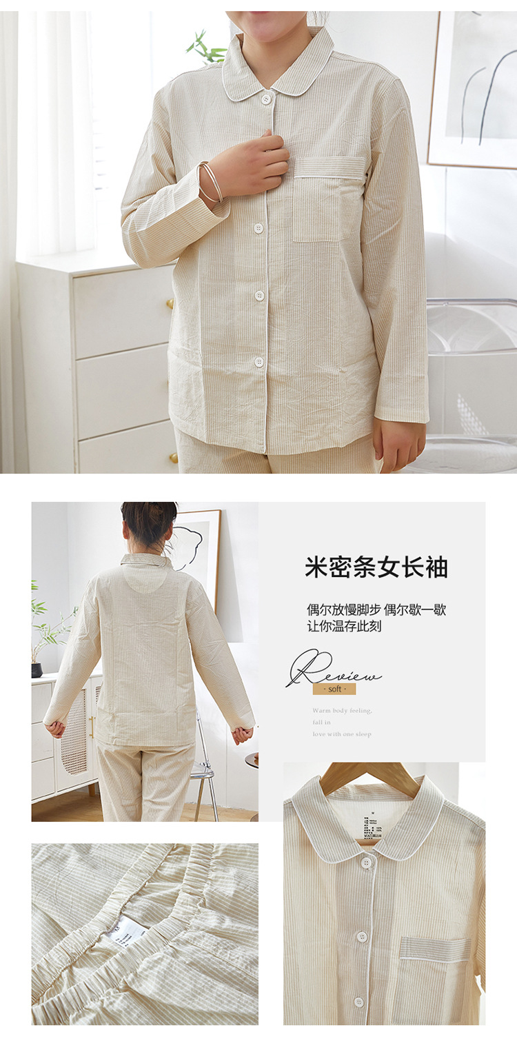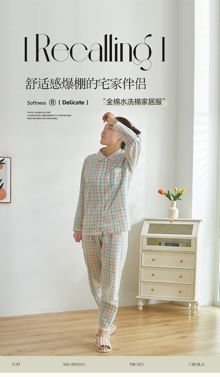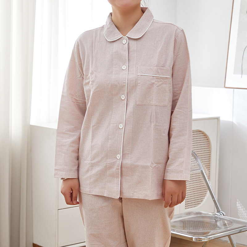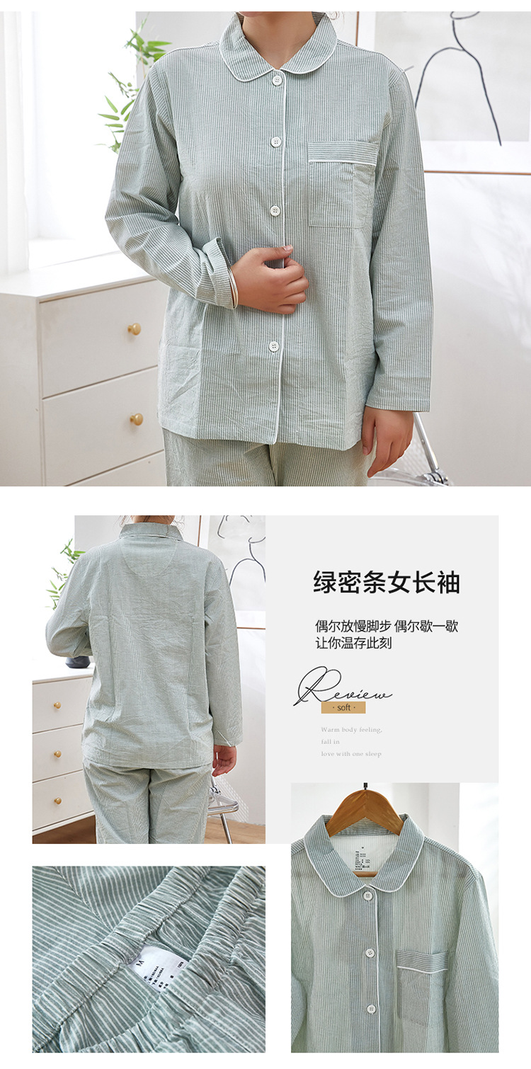 MUJI 일본식 퓨어 코튼 파자마 여성용 긴팔 체크 무늬 봄 및 여름 얇은 면 홈 의류 남성용스토어 가기