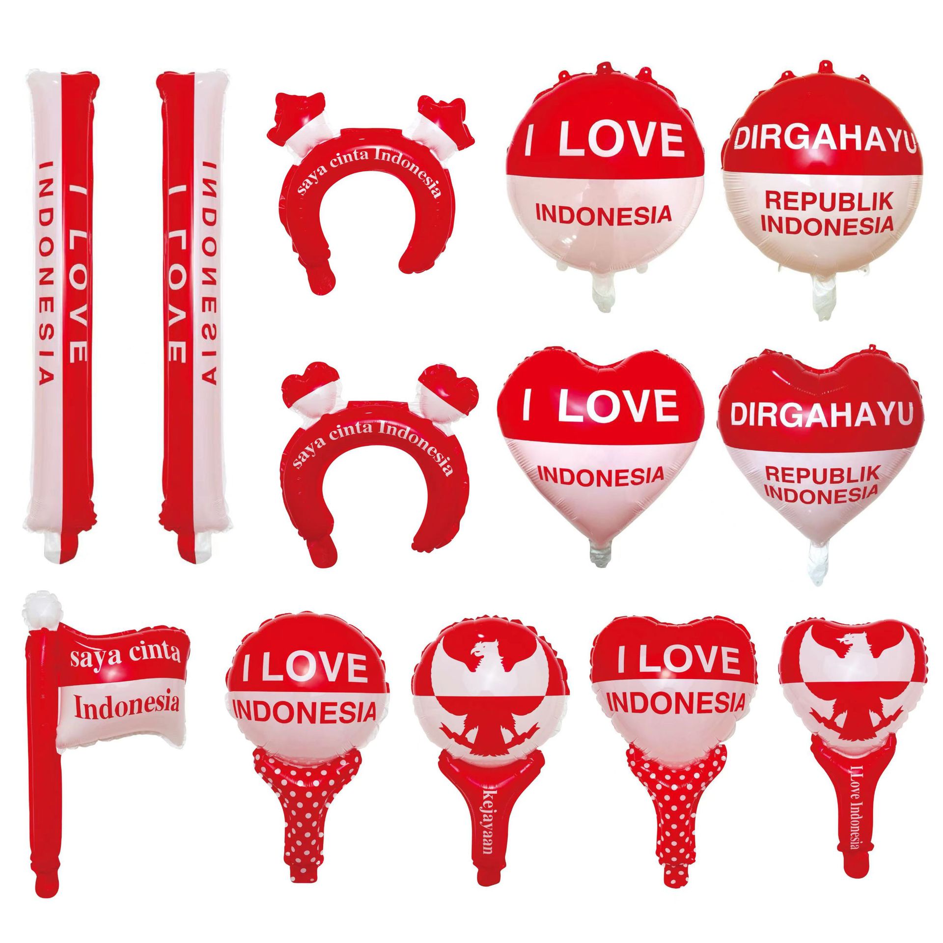 인도네시아 국경일 알루미늄 필름 풍선 인도네시아 국기 보유 연료 스틱 손목 머리 밴드 빨간색과 흰색 공