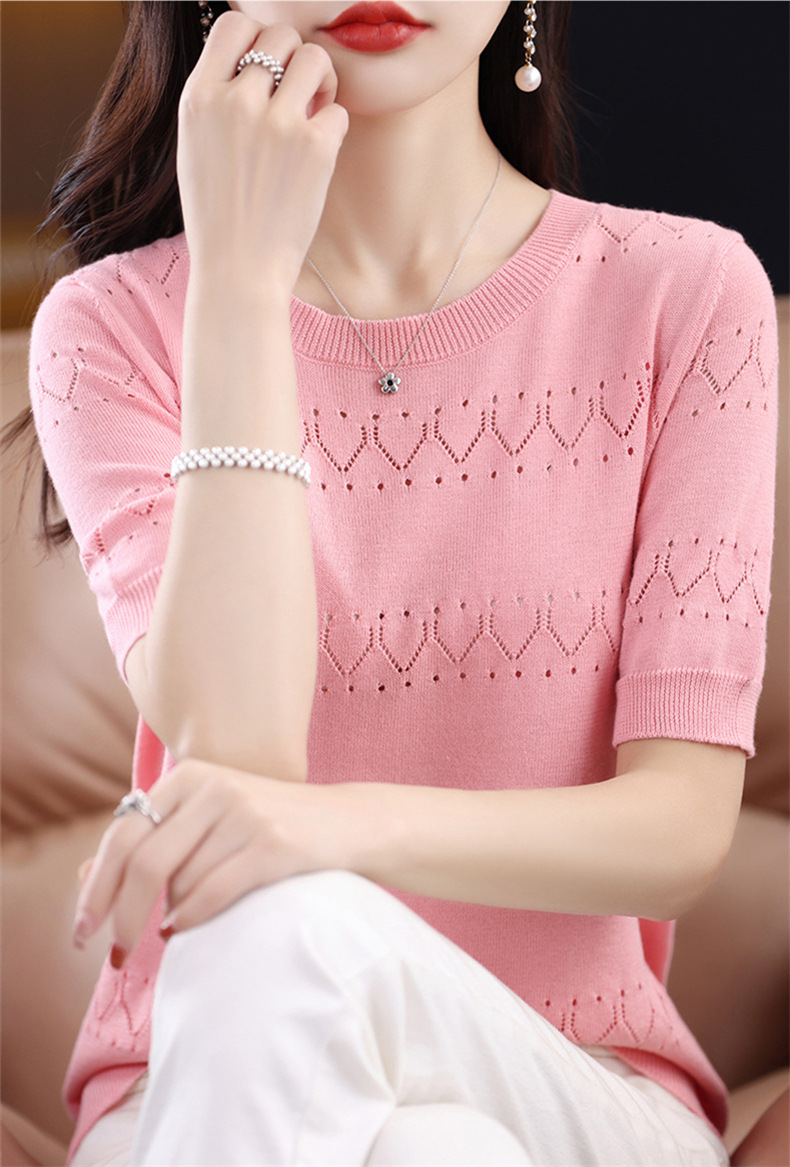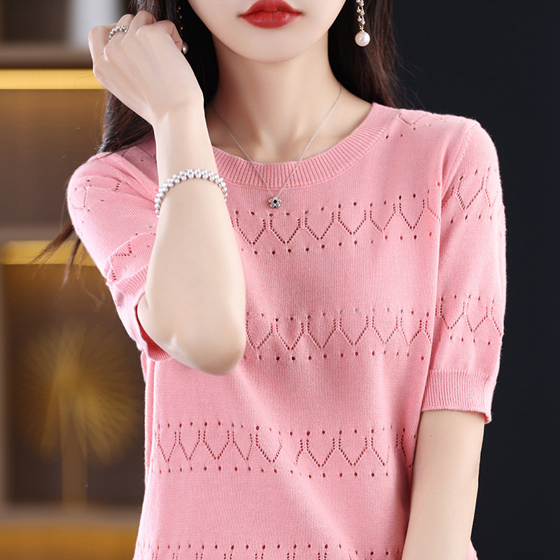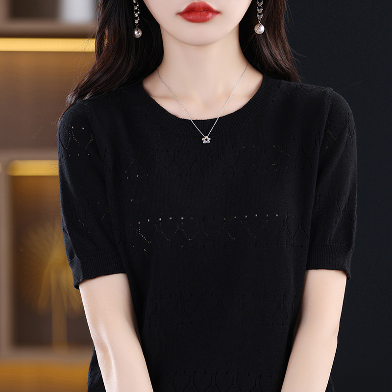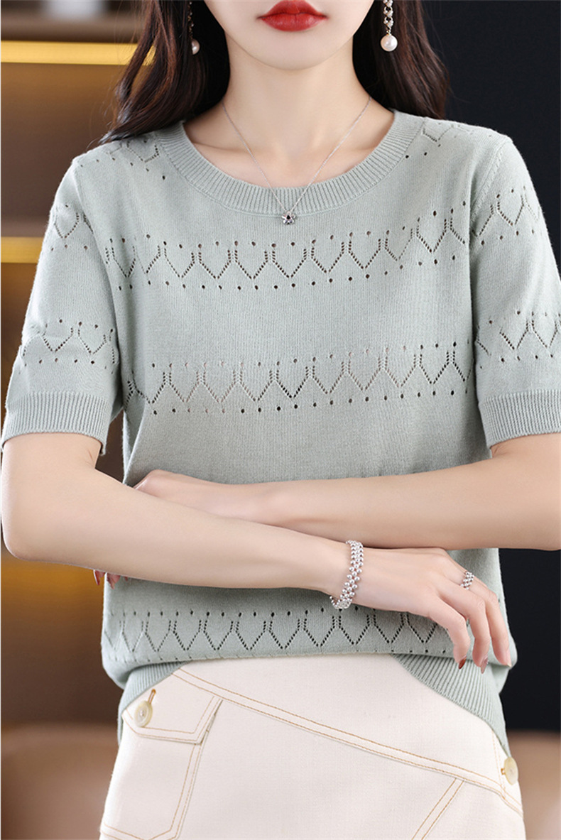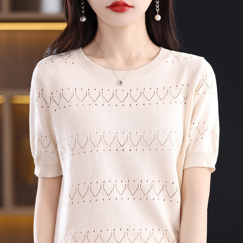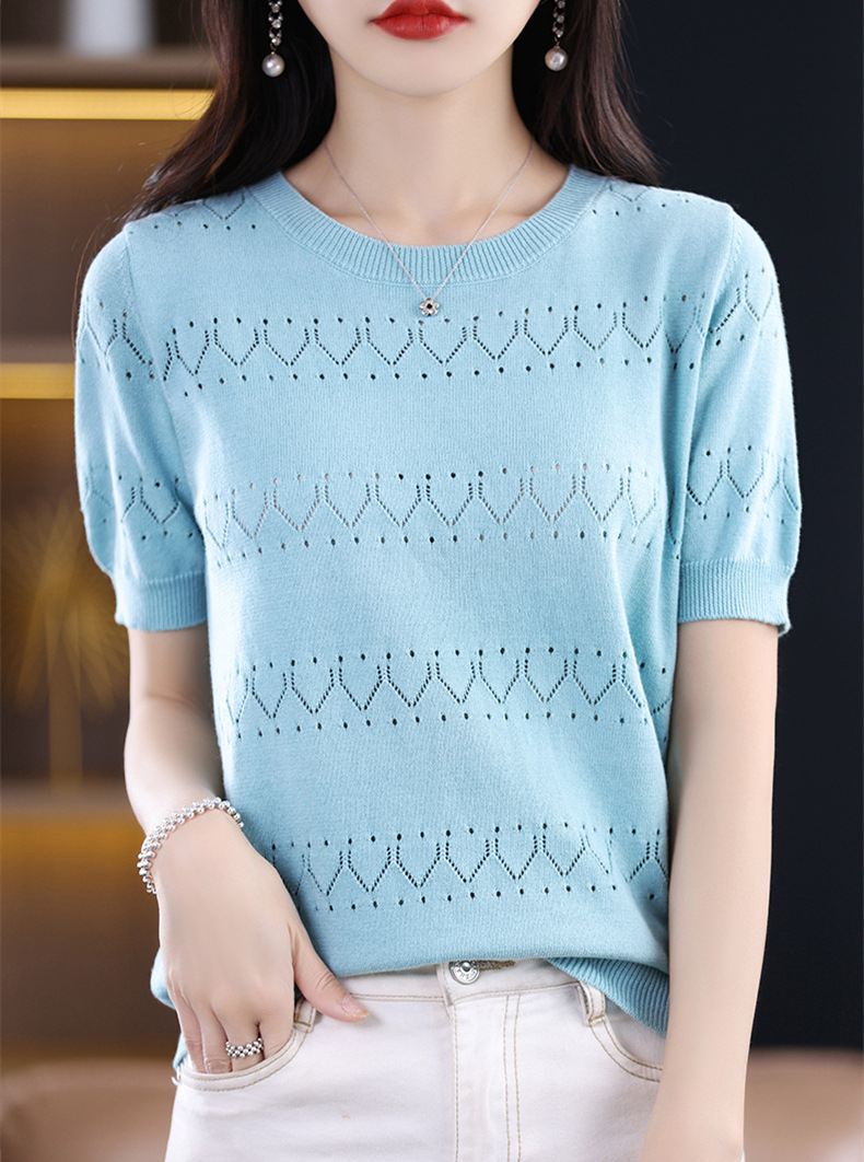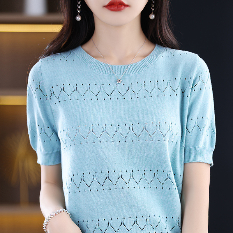 할로우 크로 셰 뜨개질 니트 반팔 티셔츠 여성용 크루 넥 풀오버 세련된 패션 베이스 느슨한 짧은 슬리밍 탑 얇은 여름