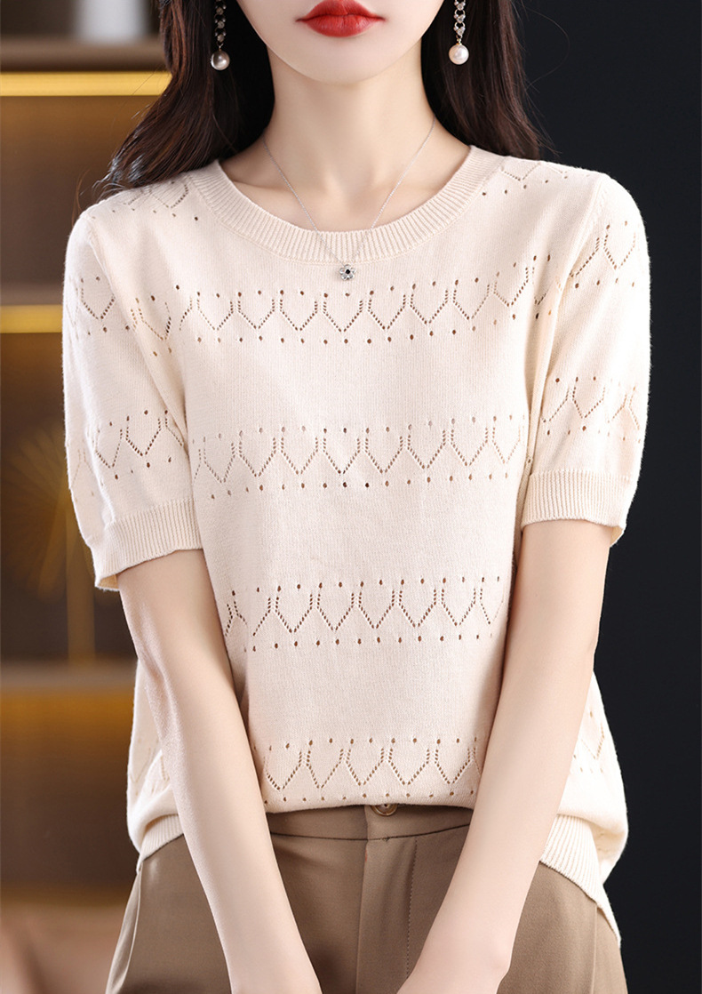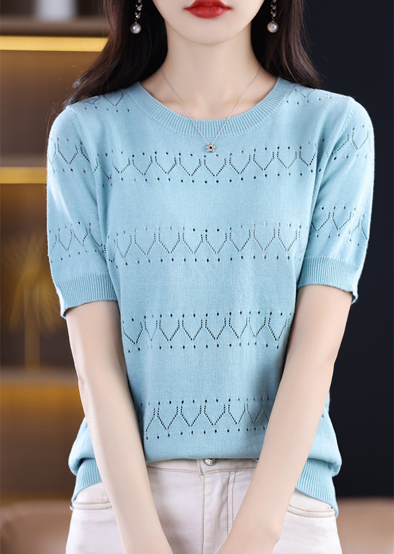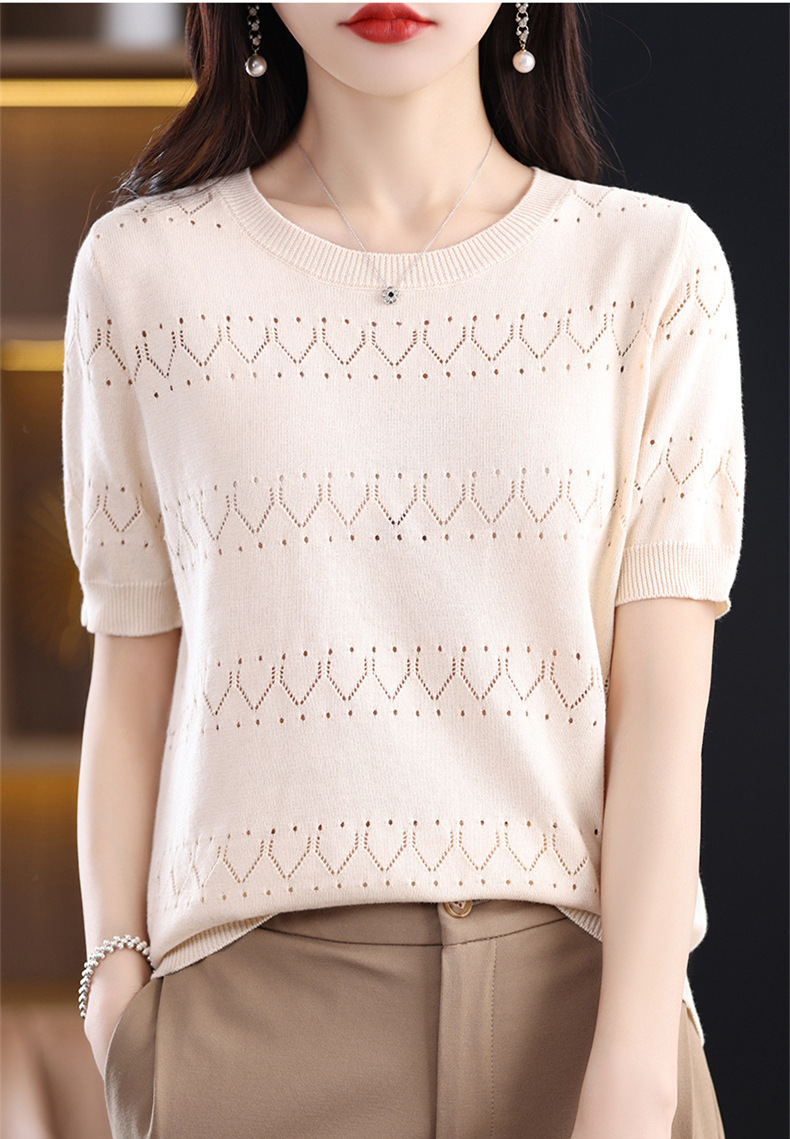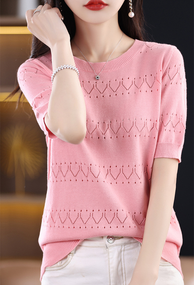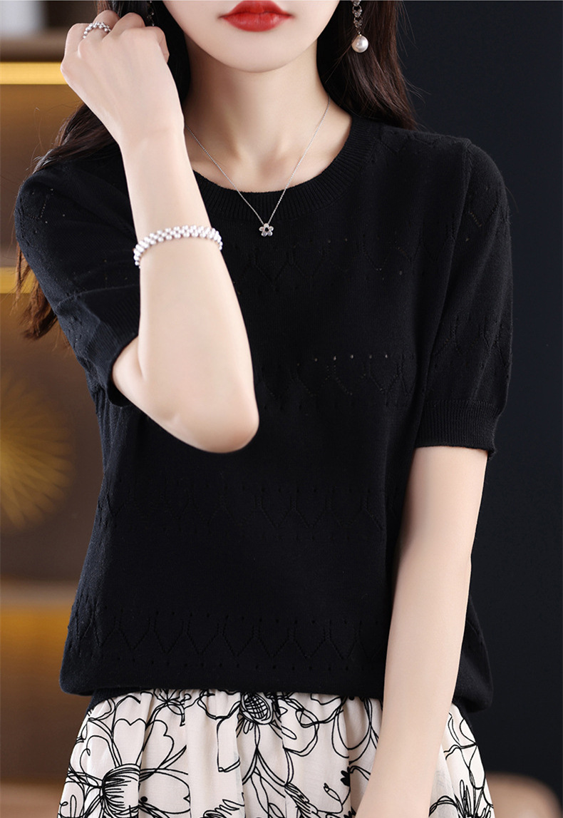할로우 크로 셰 뜨개질 니트 반팔 티셔츠 여성용 크루 넥 풀오버 세련된 패션 베이스 느슨한 짧은 슬리밍 탑 얇은 여름