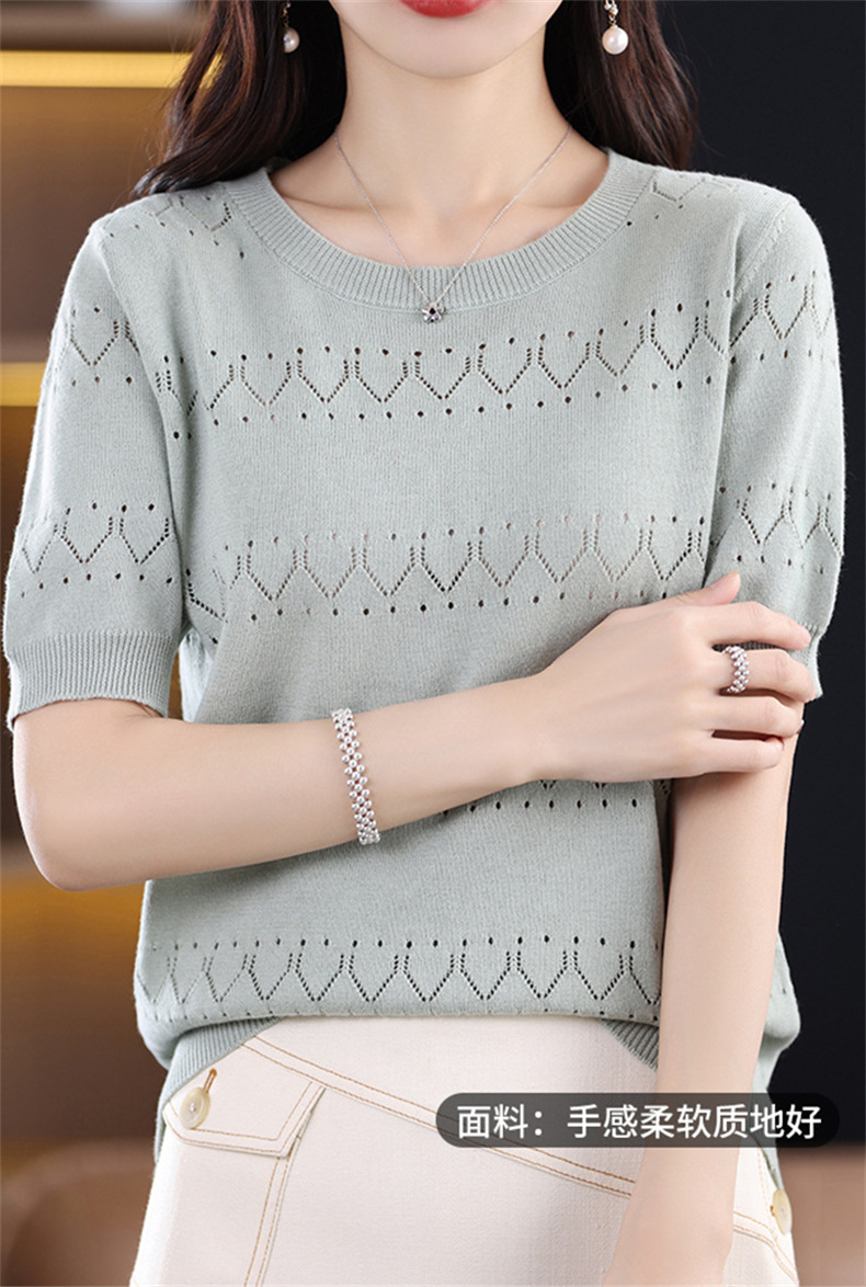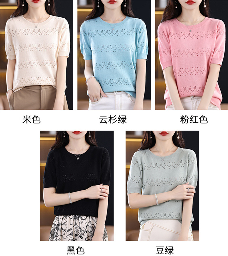 할로우 크로 셰 뜨개질 니트 반팔 티셔츠 여성용 크루 넥 풀오버 세련된 패션 베이스 느슨한 짧은 슬리밍 탑 얇은 여름스토어 가기
