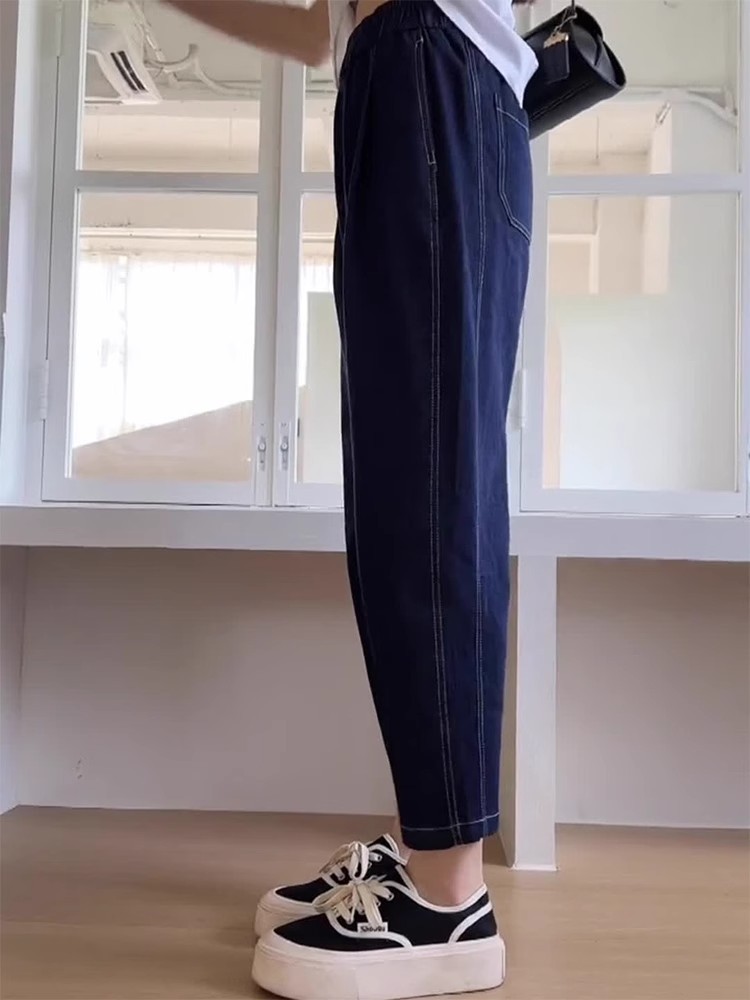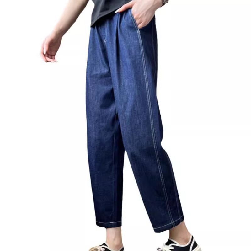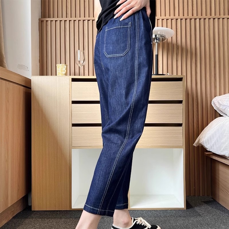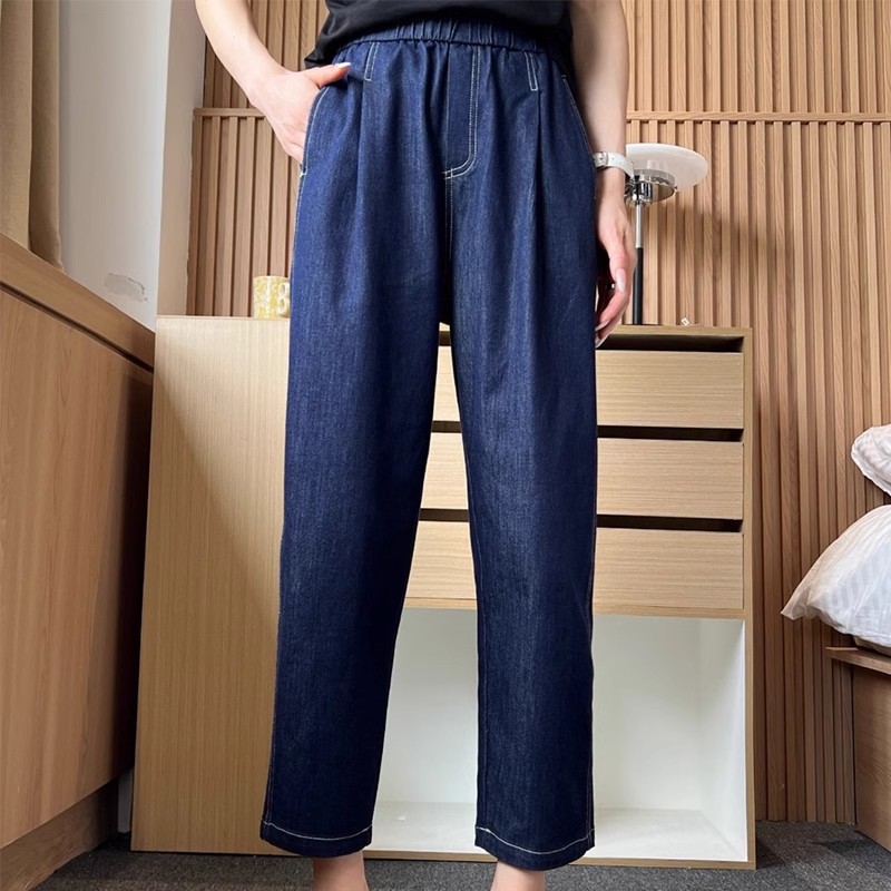 여성 플러스 사이즈 여름 얇은 높은 허리 할란 청바지 슬림 룩 통통녀 배 모양 스트레치 스트레이트 바지스토어 가기