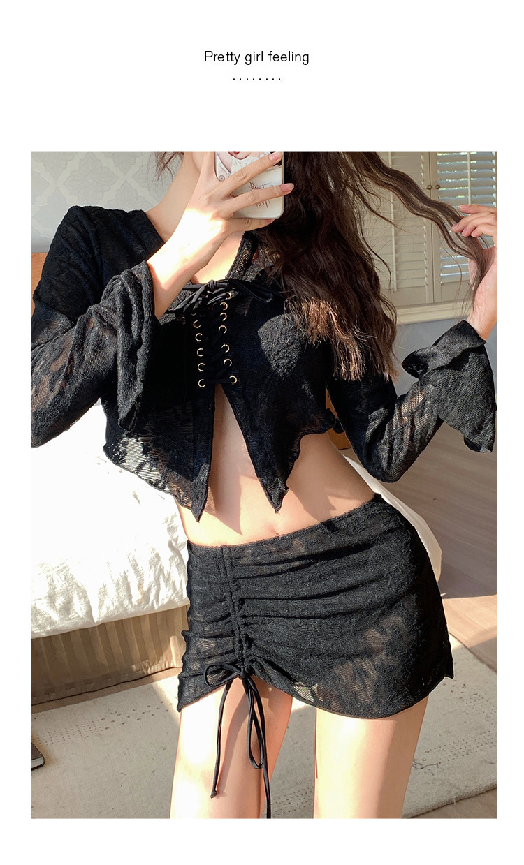 비키니 스플릿 수영복 여성용 4 피스 세트 섹시한 스파이스 소녀 벨리 커버 슬리밍 긴팔 블라우스 스파 수영복