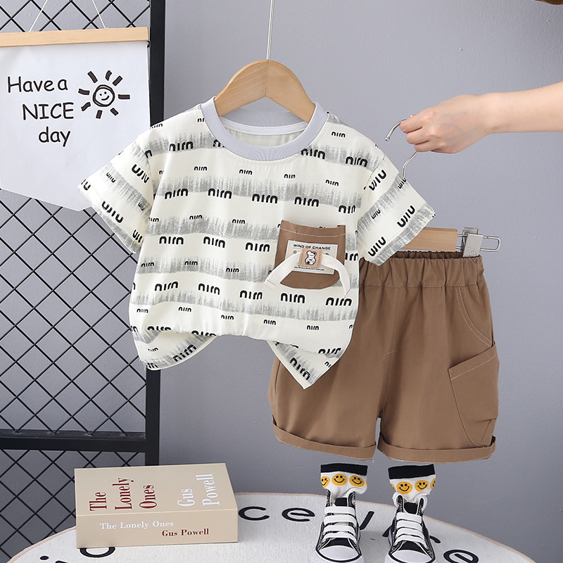 소년 여름 세트 2024 새로운 잘 생긴 아기 1-3 세 5 여름 짧은 소매 어린이 여름 투피스 머리스토어 가기