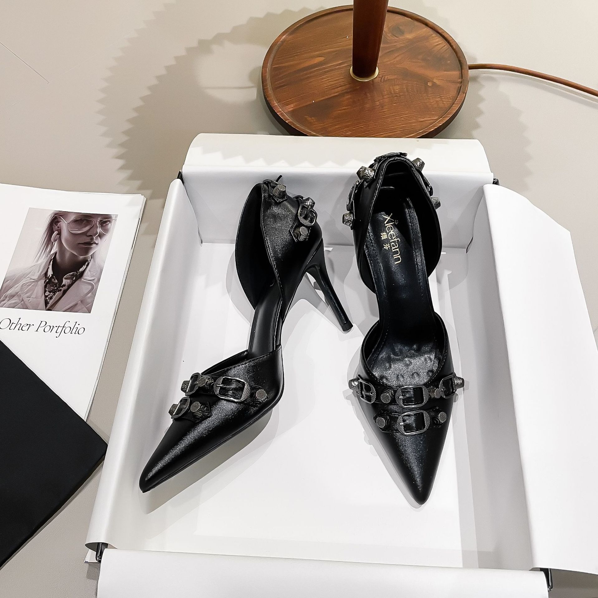 OMG !! 태국 쿨 매운 ~ 하이힐 여성용 스틸레토 리벳 얕은 입 펑크 스타일 뾰족한 슈퍼 하이힐 스파이스 걸스 싱글 슈즈 여성