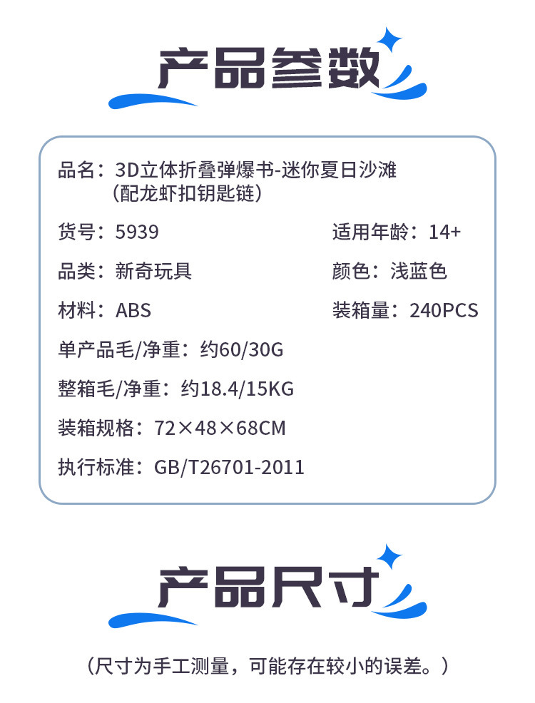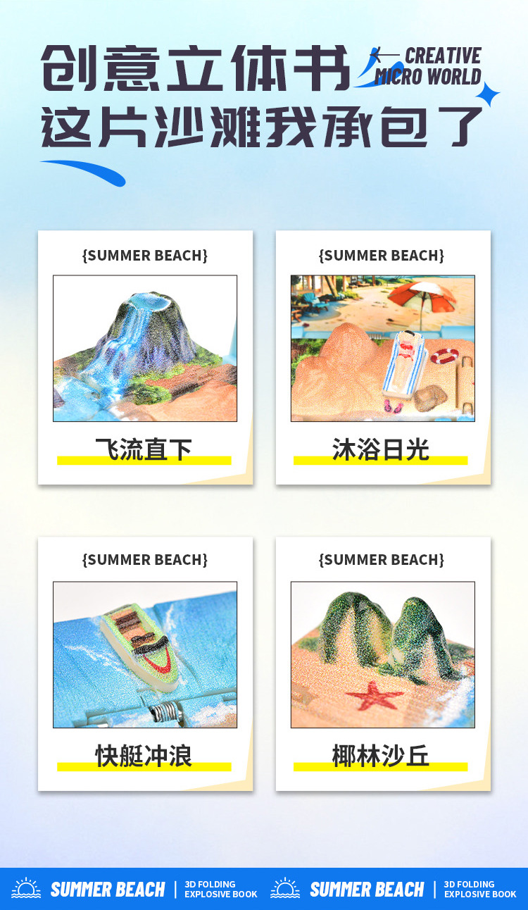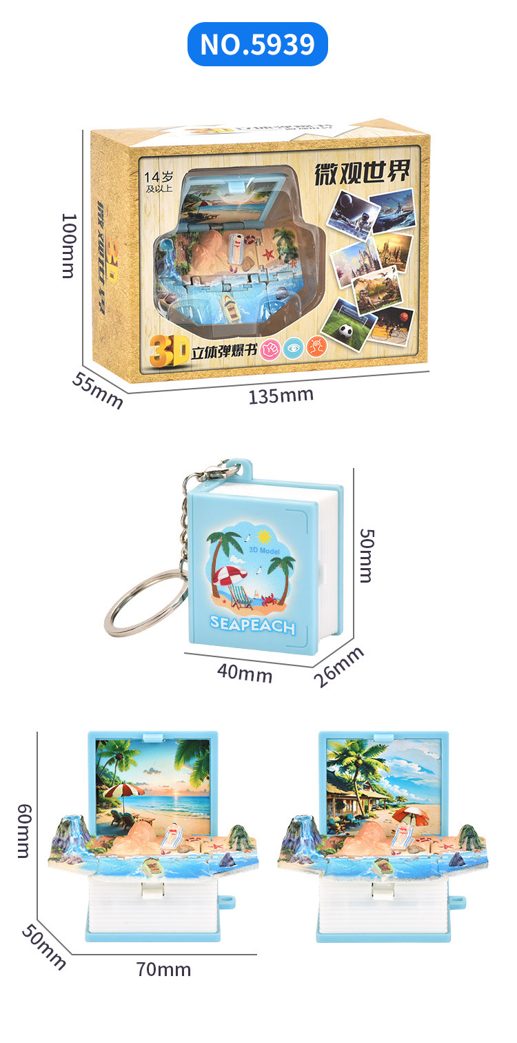 3D 여름 해변 접이식 폭탄 책 미니 키 체인 높은 색상 가치 만화 펜던트 감압 창조적 인 장난감스토어 가기