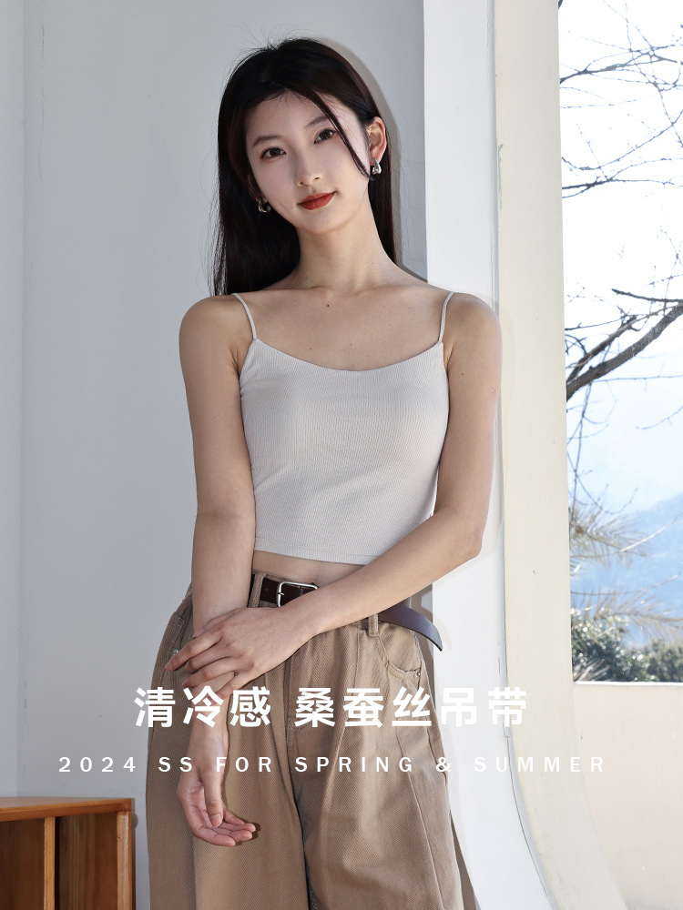 뽕나무 실크 카미 솔 여성 벨트 가슴 패드 착용-없는 브래지어 스레드 모달베이스 내복 외주 아름다운 뒤 짧은 착용스토어 가기