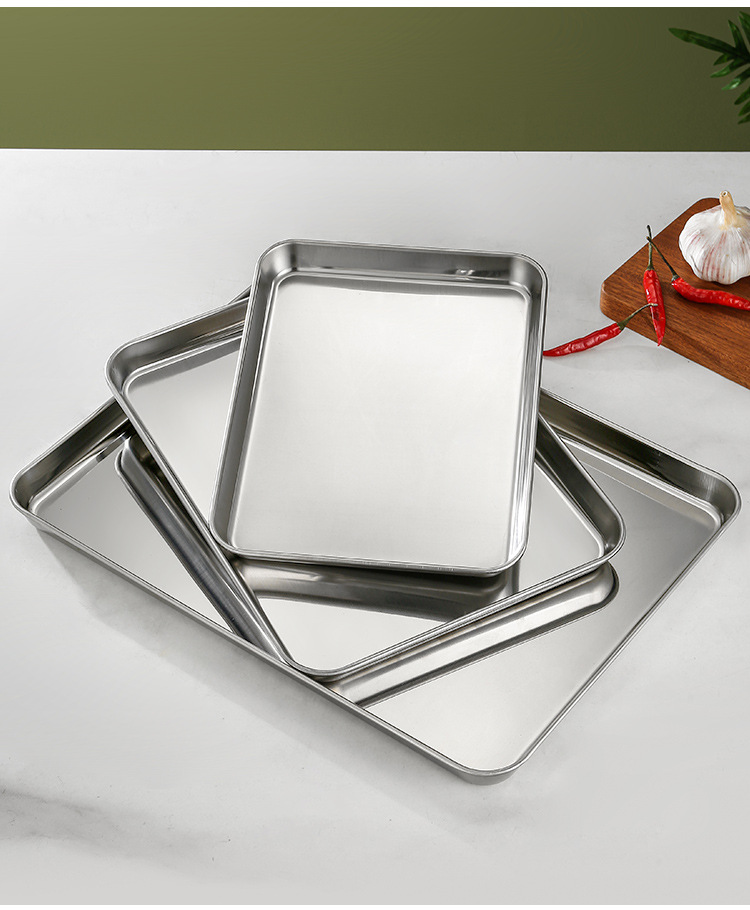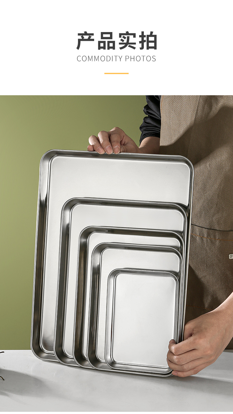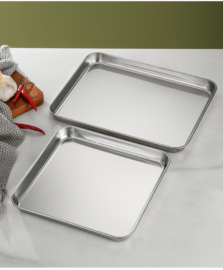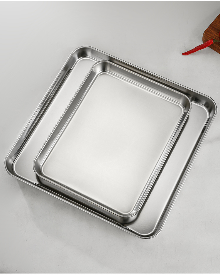 스테인레스 스틸 플레이트 직사각형 플랫 하단 바베큐 트레이 레스토랑 스페어 플레이트 라이스 그릇 김이 플레이트 스퀘어 플레이트 상업 도매스토어 가기