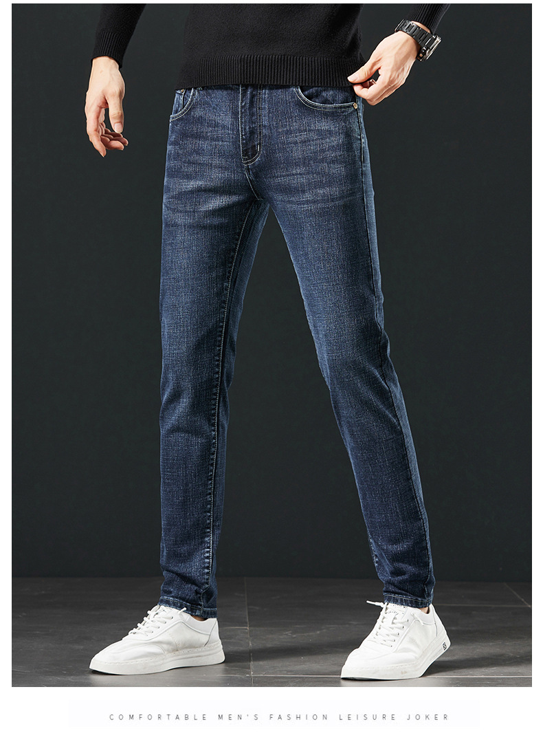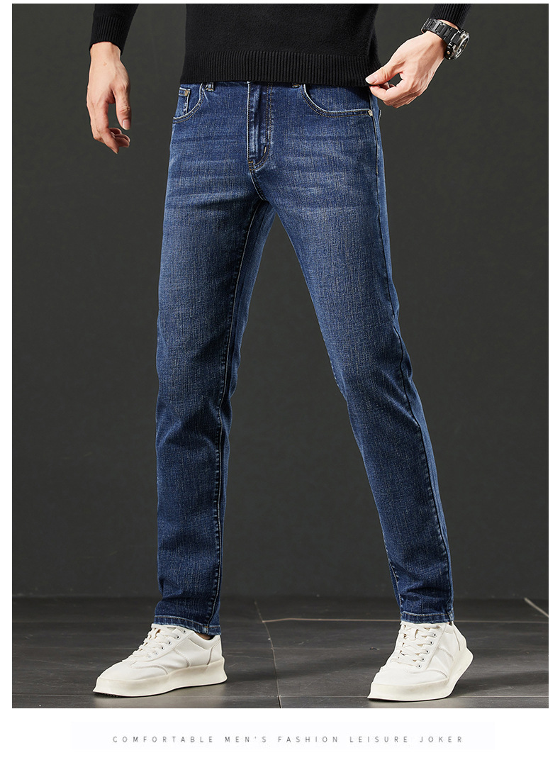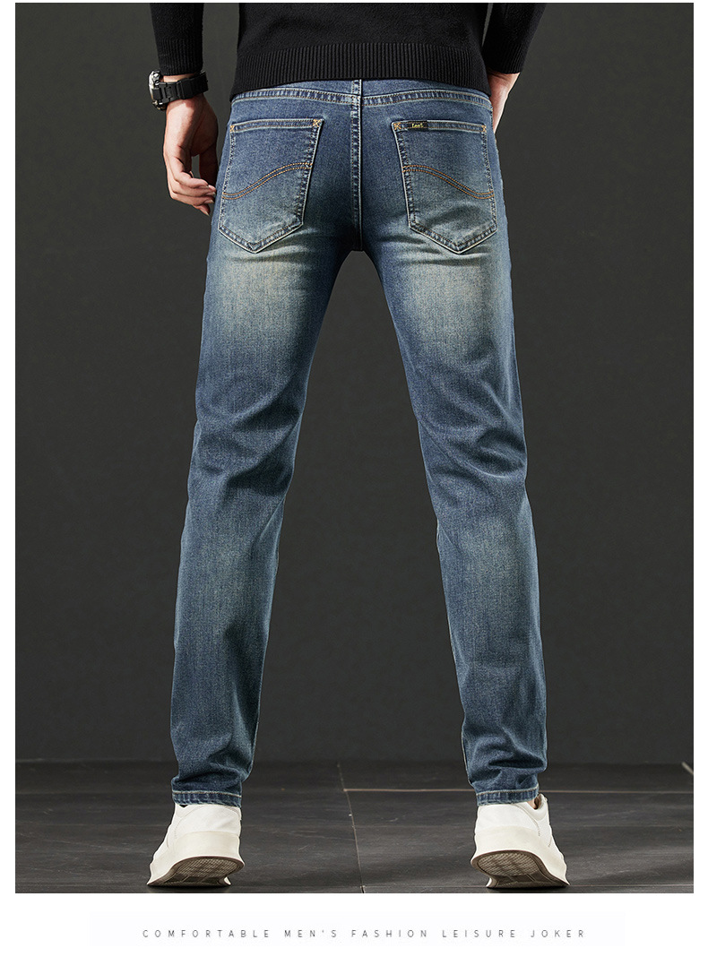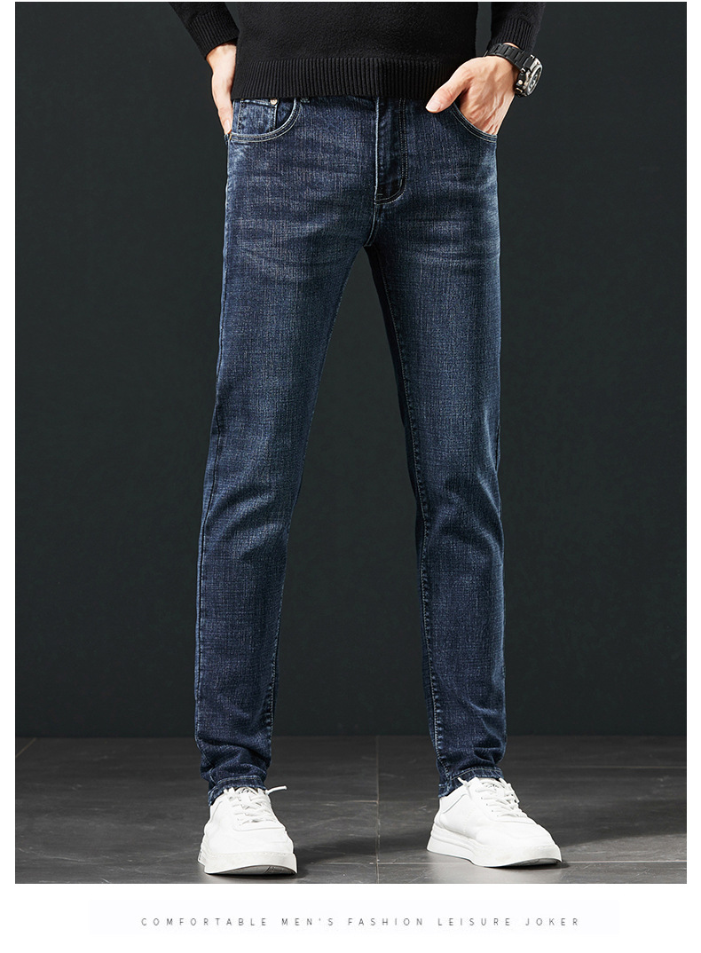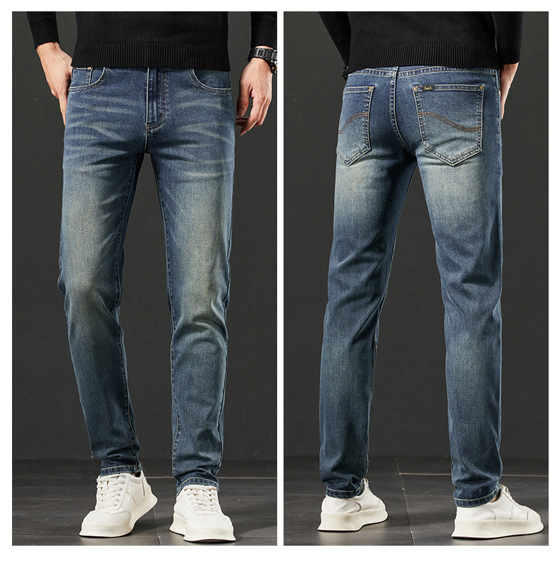 사계절 하이 엔드 청바지 남자 한국 스트레치 슬림 핏 작은 스트레이트 코튼 브랜드 캐주얼 바지 크로스 보더 오리지널스토어 가기