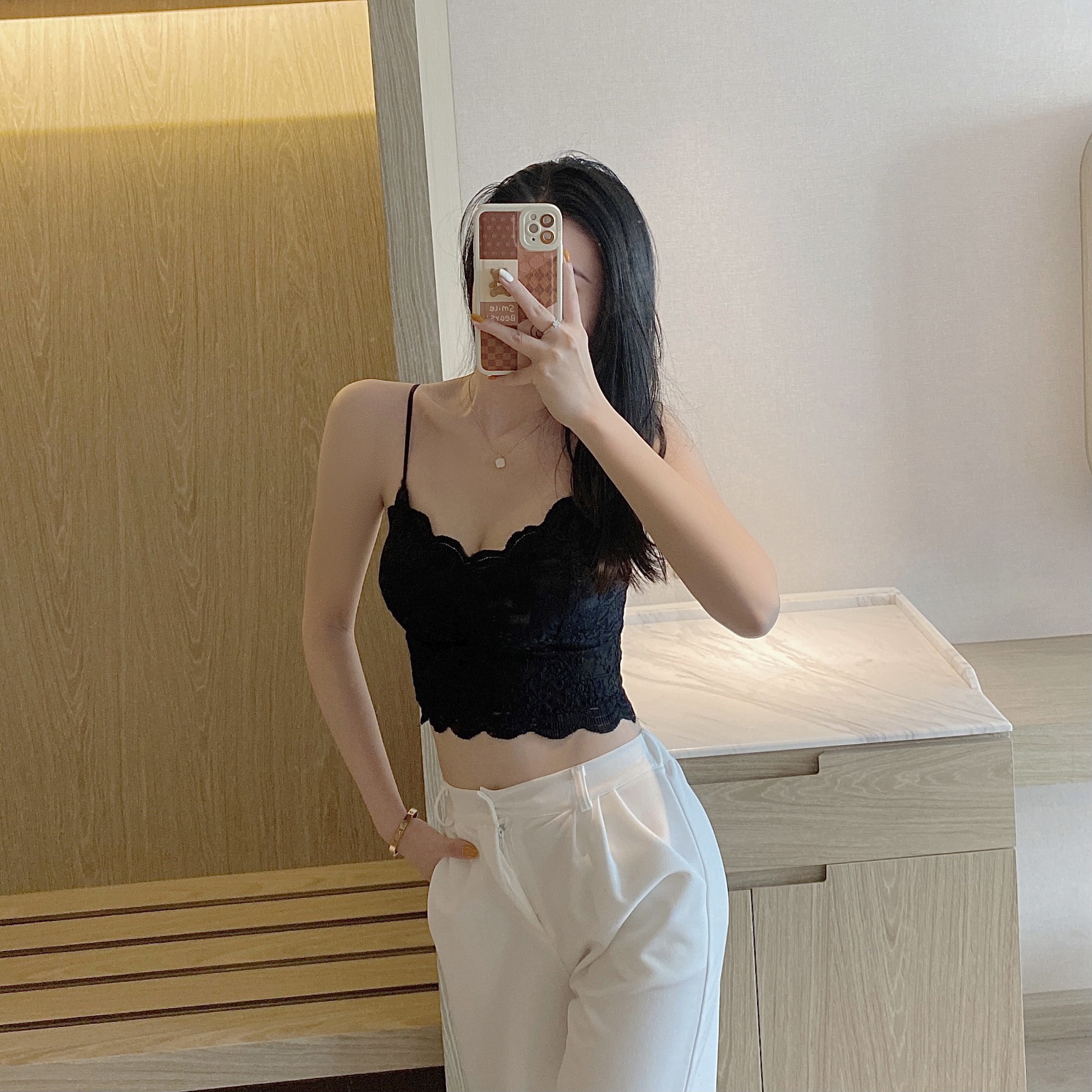 새로운 프랑스 스타일 레이스 카미 솔 여성용 가슴 패드 아름다운 뒷베이스 외부 착용 내부 슬림 핏 슬림 핏 쇼트 탑스토어 가기