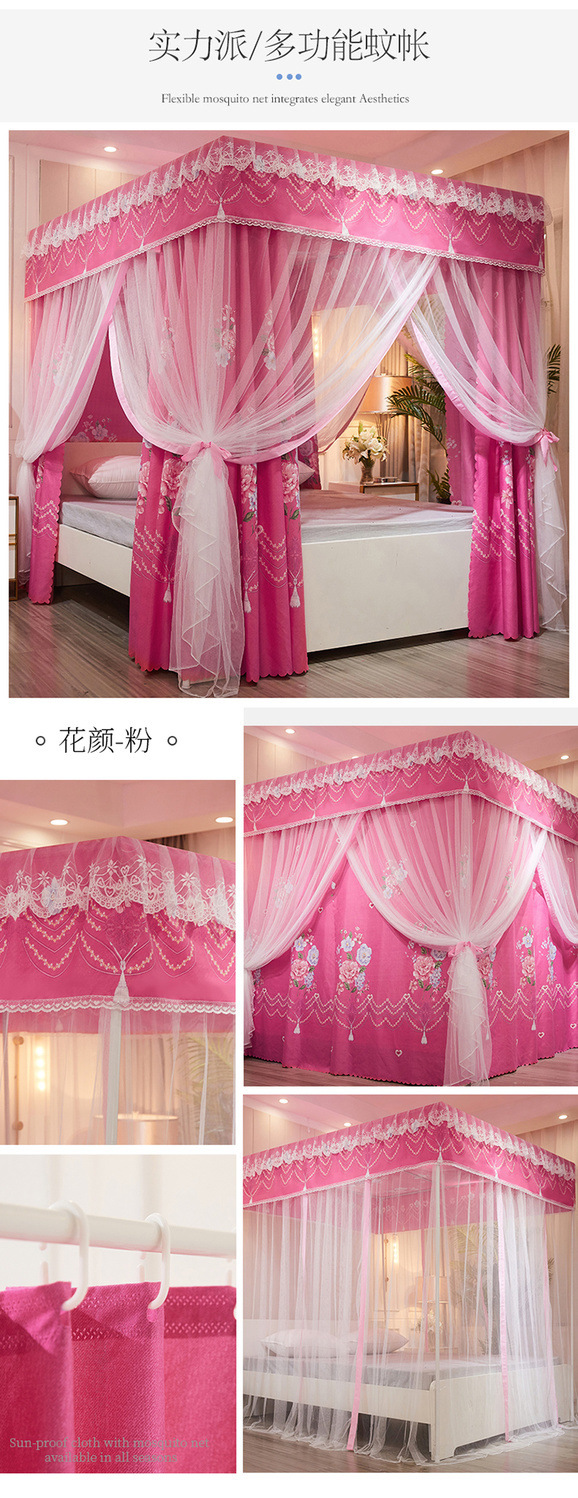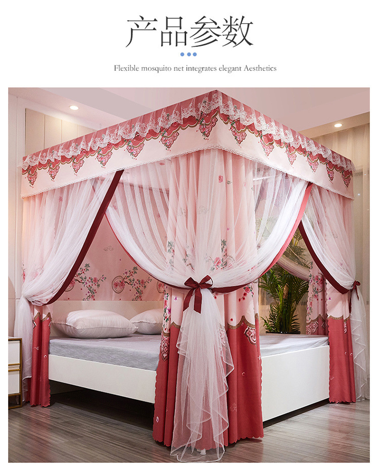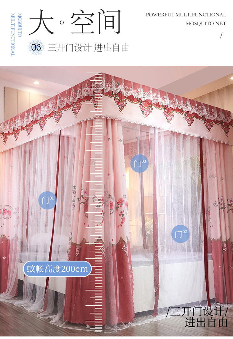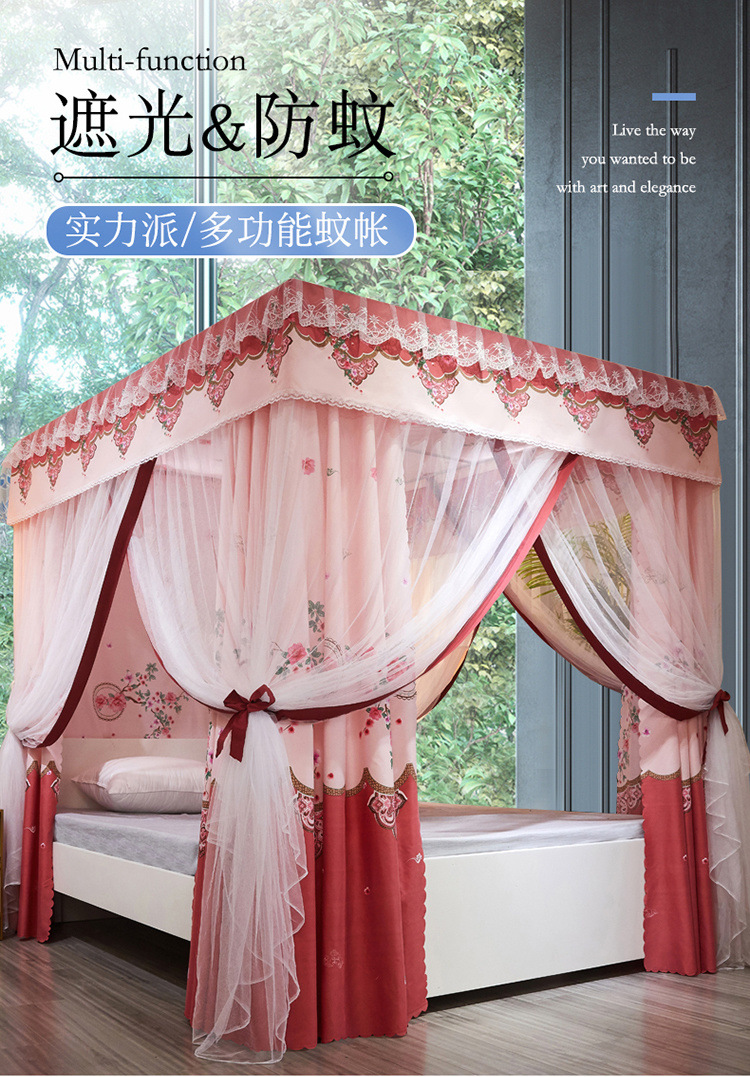 가정용 모기장 커튼 통합 공주 바람 음영 침대 커튼 암호화 두꺼운 궁전 스타일 3 도어 도매
