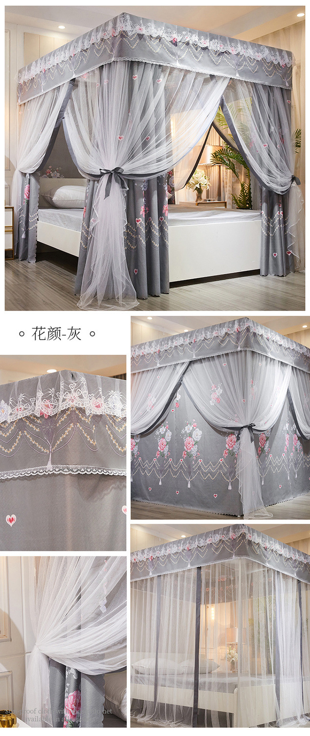 가정용 모기장 커튼 통합 공주 바람 음영 침대 커튼 암호화 두꺼운 궁전 스타일 3 도어 도매스토어 가기