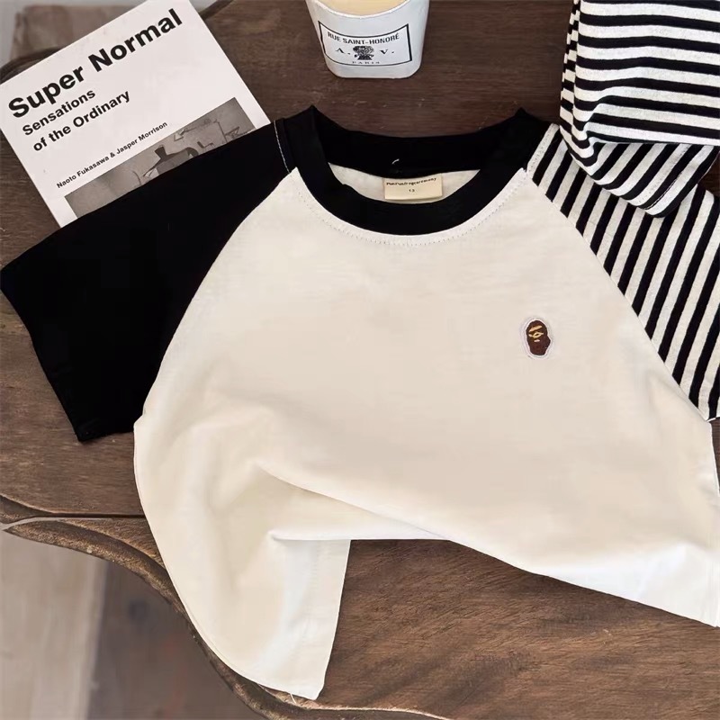 어린이 코튼 반팔 새 여름 일본 스타일 유행 브랜드 만화 자수 티셔츠 소년 소녀