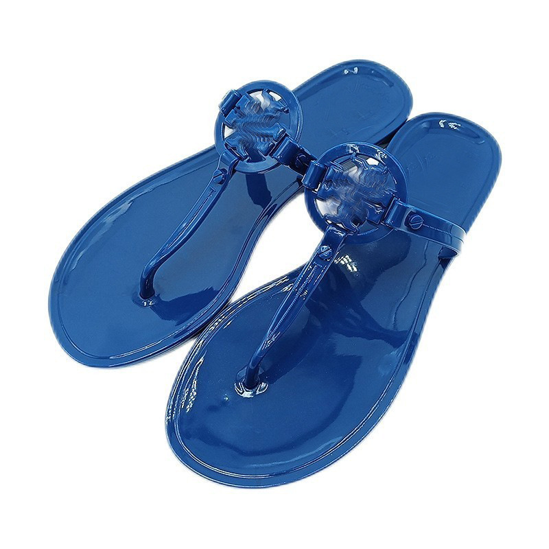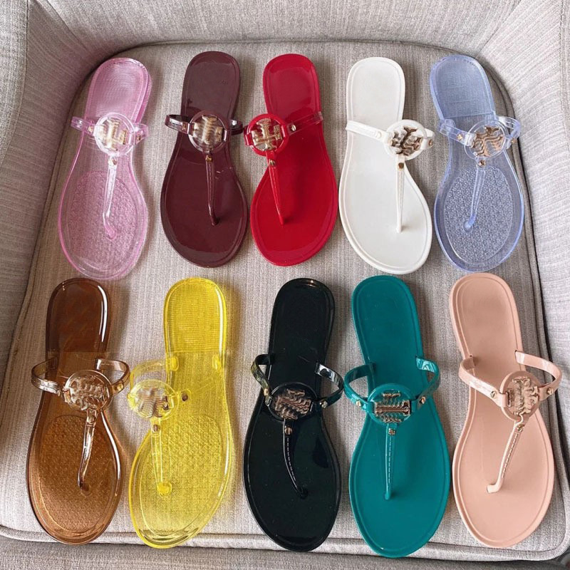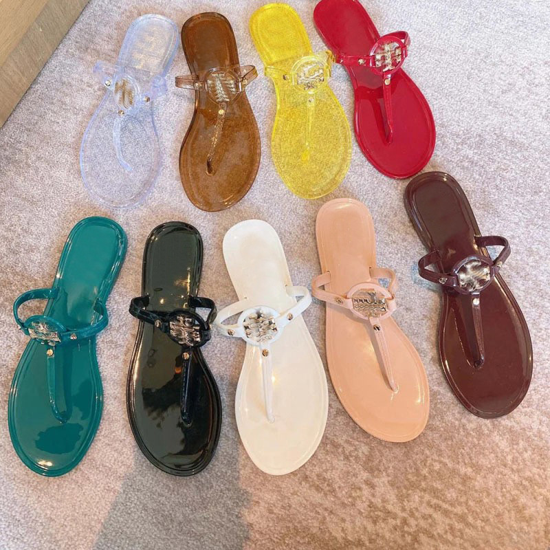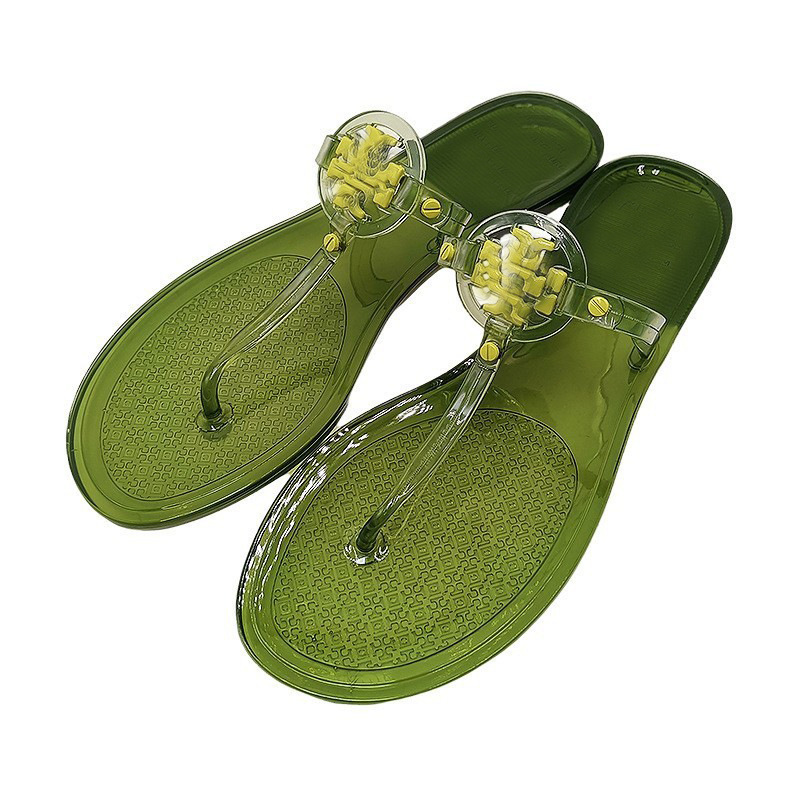 TB 슬리퍼 여성 2024 년 여름 크리스탈 젤리 바닥 플립 플롭 유럽과 미국 패션 홈 아웃 비치 플랫 슬리퍼