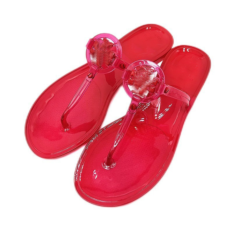 TB 슬리퍼 여성 2024 년 여름 크리스탈 젤리 바닥 플립 플롭 유럽과 미국 패션 홈 아웃 비치 플랫 슬리퍼스토어 가기