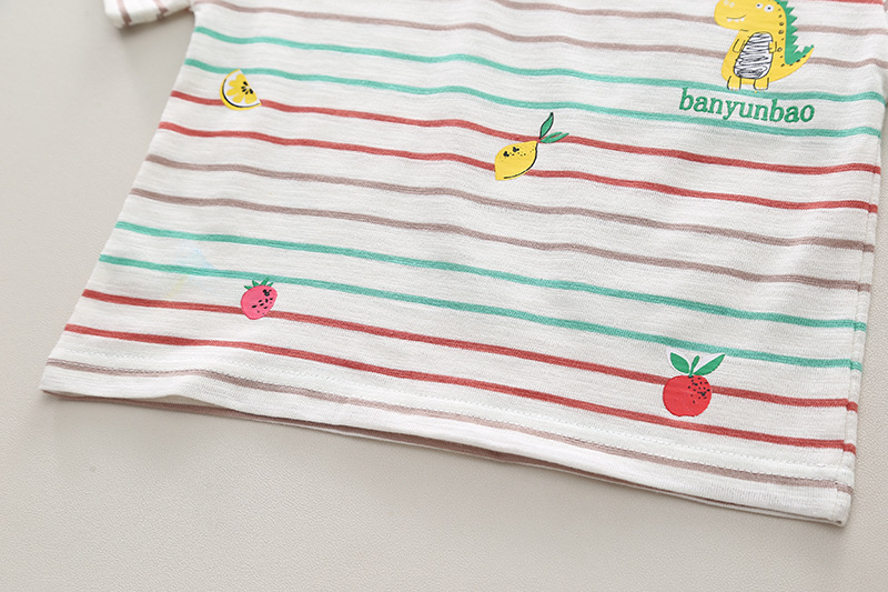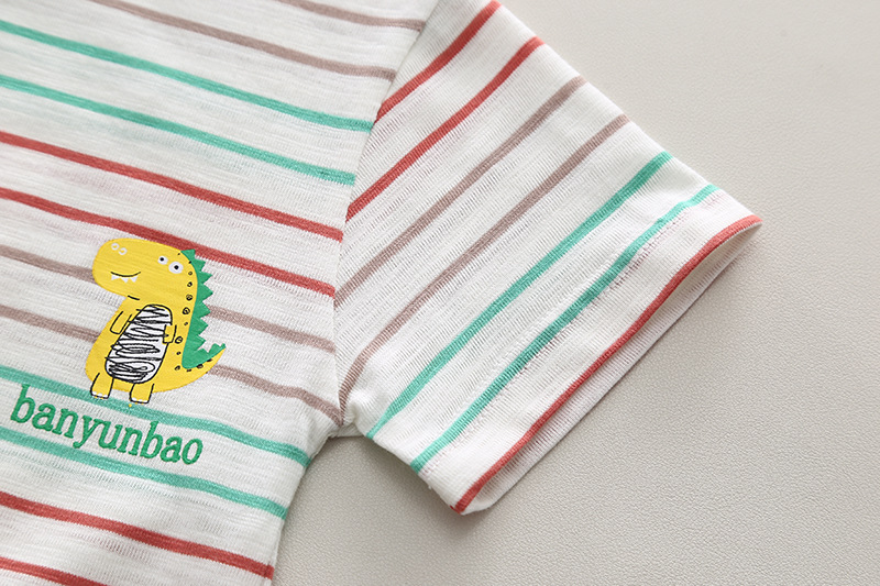 뜨거운 판매 소년 소녀 패션 줄무늬 짧은 소매 세트 2024 년 새로운 어린이 여름 의류 조류의 한국어 버전스토어 가기