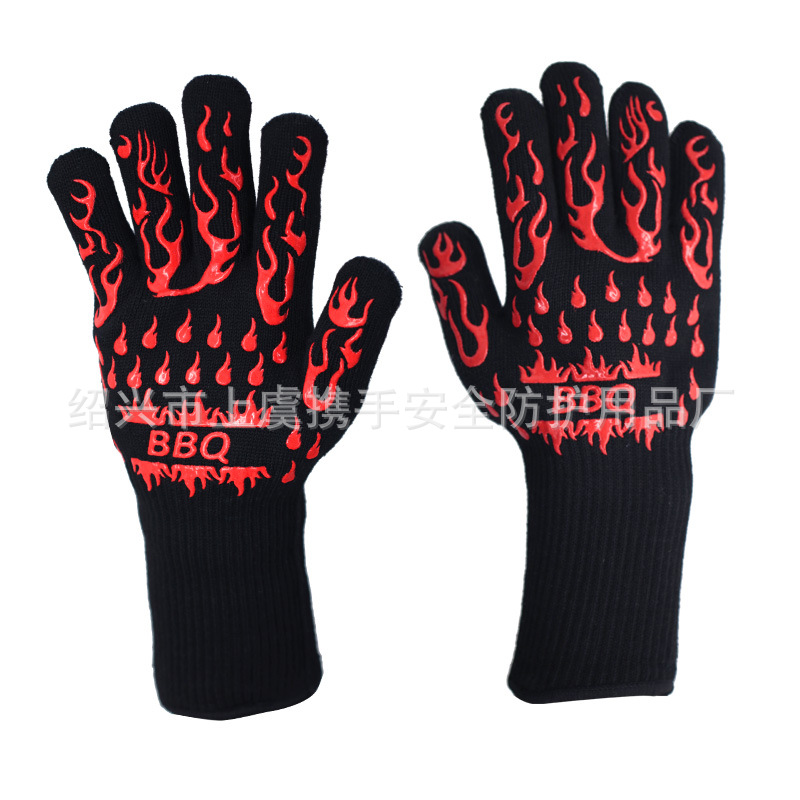 고온 800도 전자 레인지 바베큐 바베큐 주방 바베큐 오븐 보호 장갑에 대한 절연 및 화상 방지 실리콘 보호 장갑