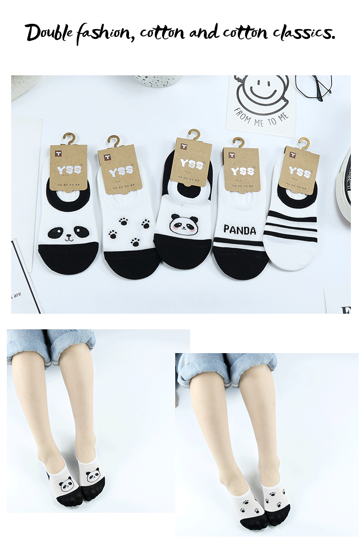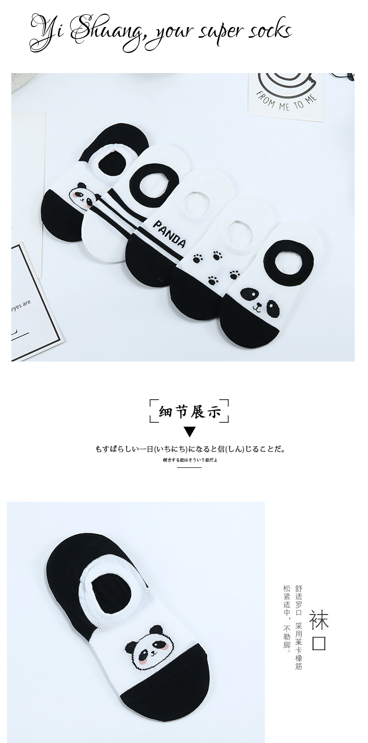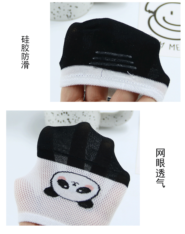 이 쌍 어린이 양말 여름 메쉬 통기성 만화 팬더 보이지 않는 양말 빗 코튼 실리콘 안티 슬립 보트 양말스토어 가기