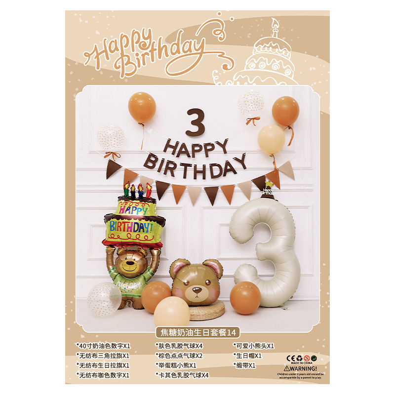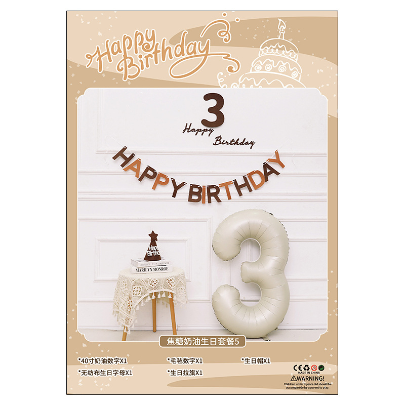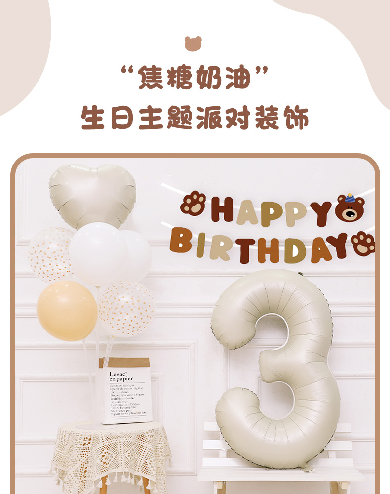 국경 내 스타일 진한 베이지 크림 컬러 디지털 알루미늄 필름 풍선 어린이 생일 파티 장식 풍선 도매