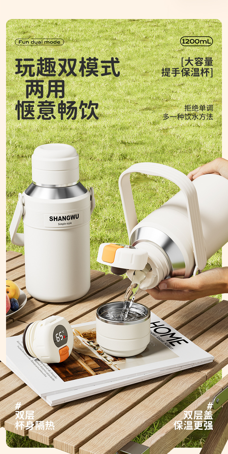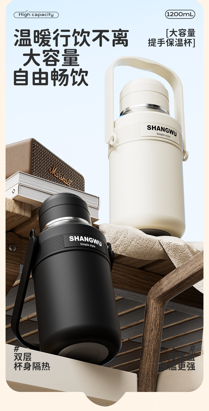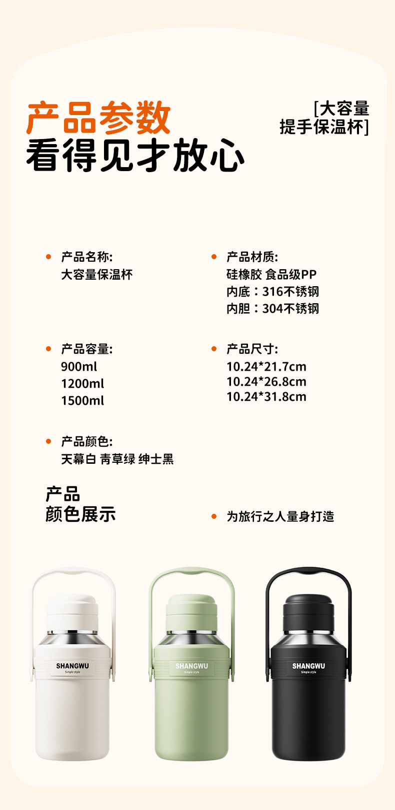 2025년 신형 패션 대용량 보온병 고급스러운 여성용 야외 휴대용 물병 316 스테인리스 물컵스토어 가기
