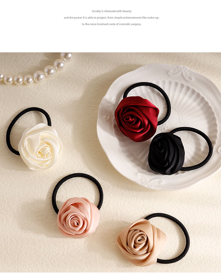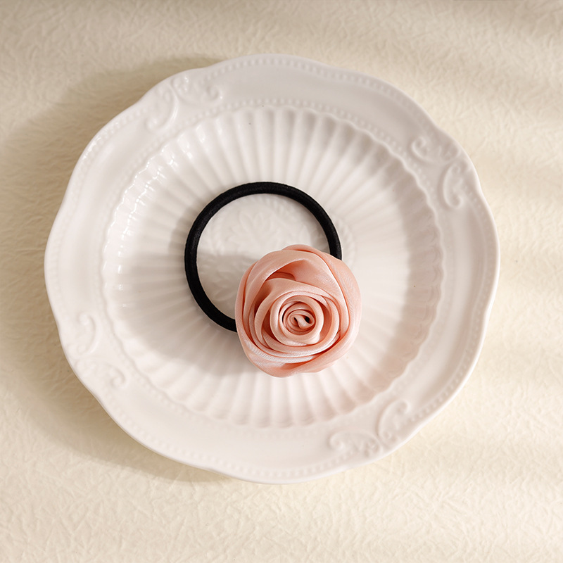 프랑스 하이 엔드 로즈 헤어 링 달콤한 소녀 샤넬 스타일 넥타이 헤어 로프 타이 헤드 백 헤어 로프 헤어 액세서리