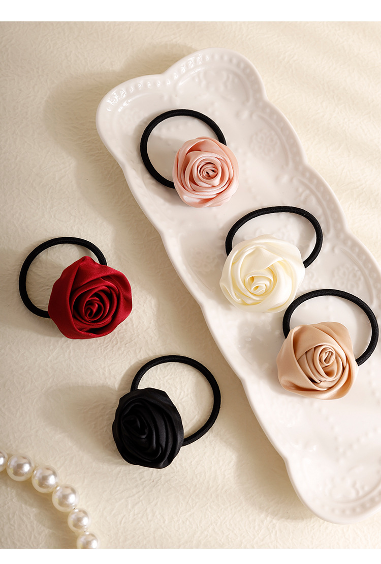 프랑스 하이 엔드 로즈 헤어 링 달콤한 소녀 샤넬 스타일 넥타이 헤어 로프 타이 헤드 백 헤어 로프 헤어 액세서리스토어 가기