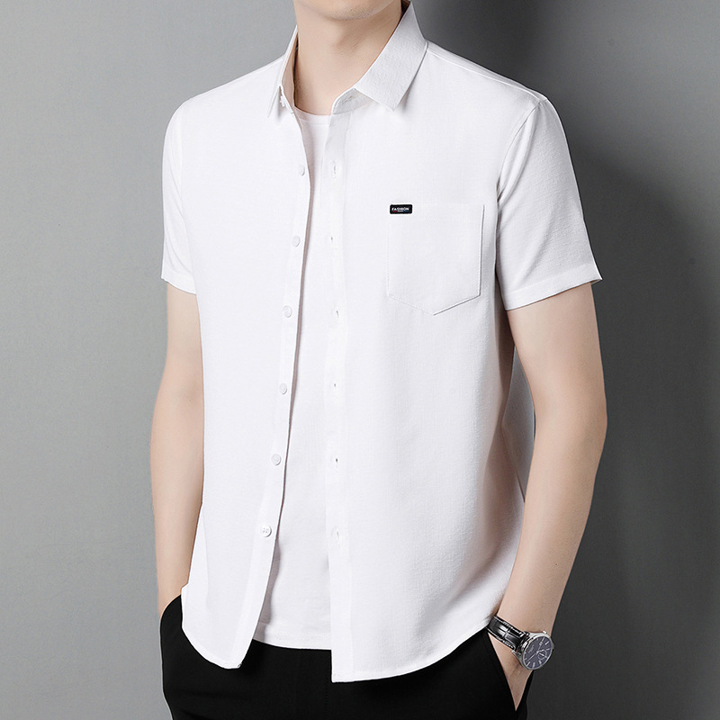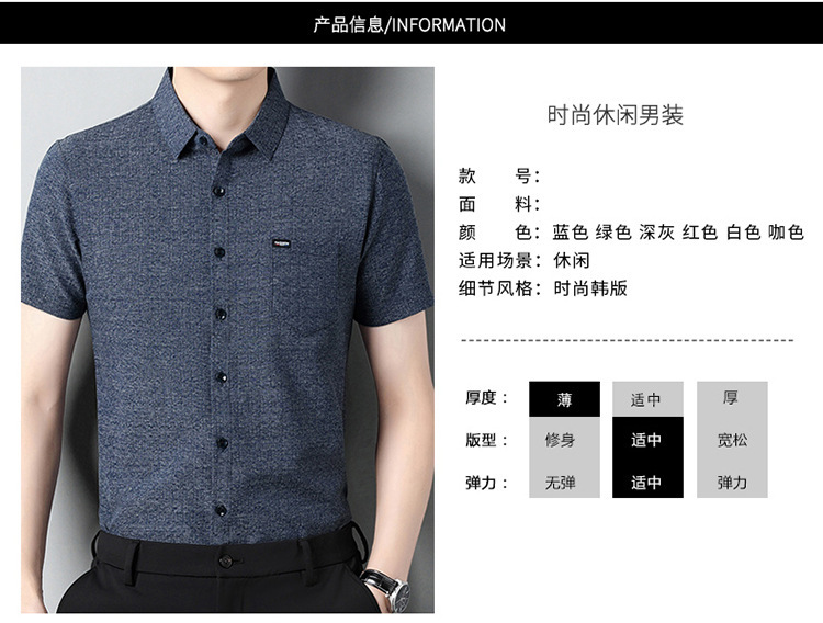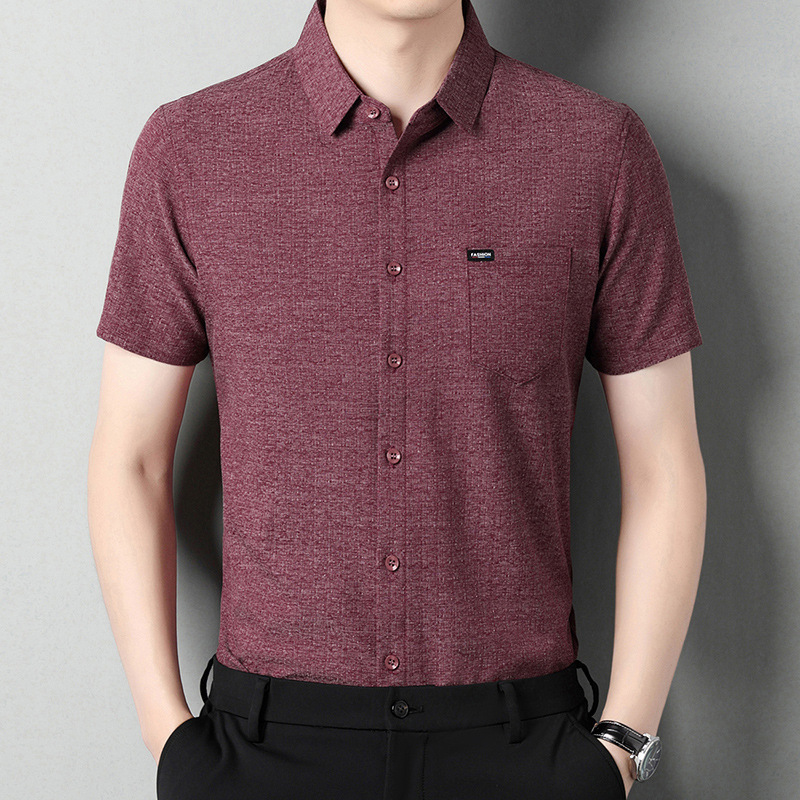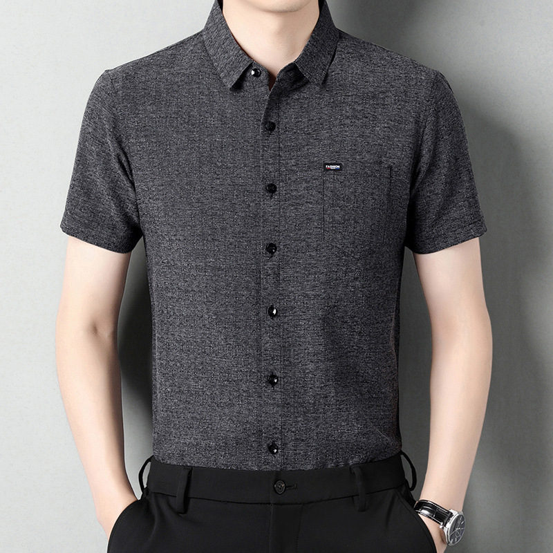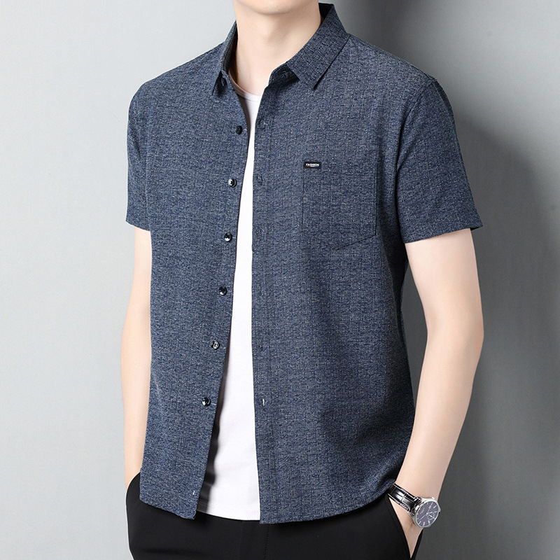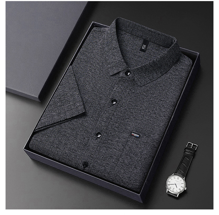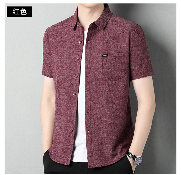 중년 남성 반팔 셔츠 단색 모조면과 린넨 리얼 포켓 캐주얼 반소매 스트레이트 주름 방지 여름 셔츠스토어 가기