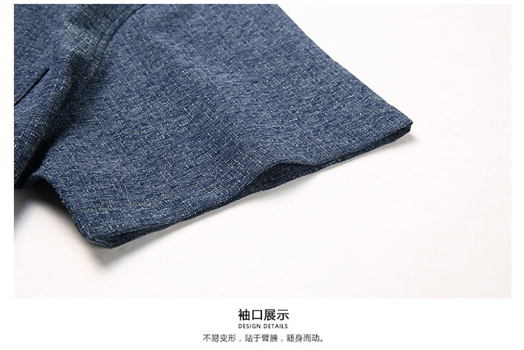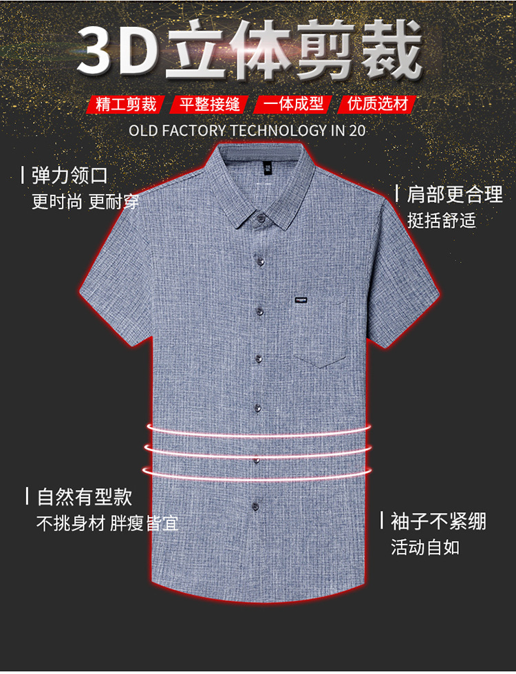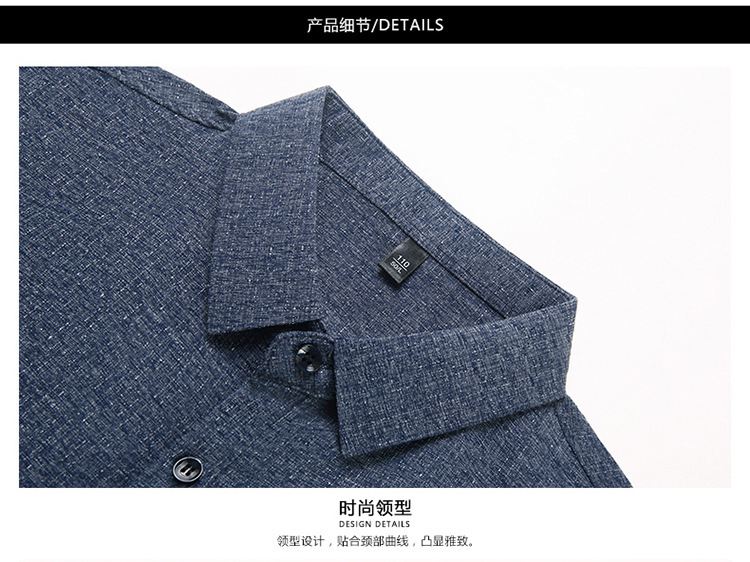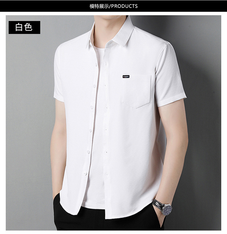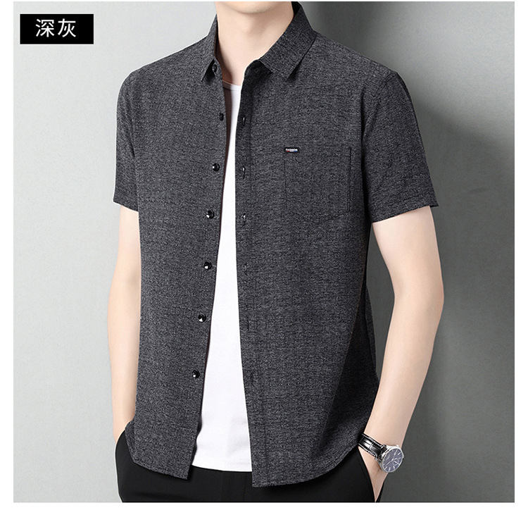 中年男男士短袖衬衫纯色仿棉麻真口袋休闲半袖衬衣挺直抗皱夏装