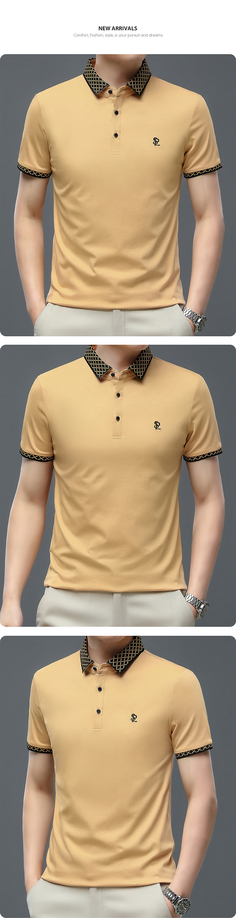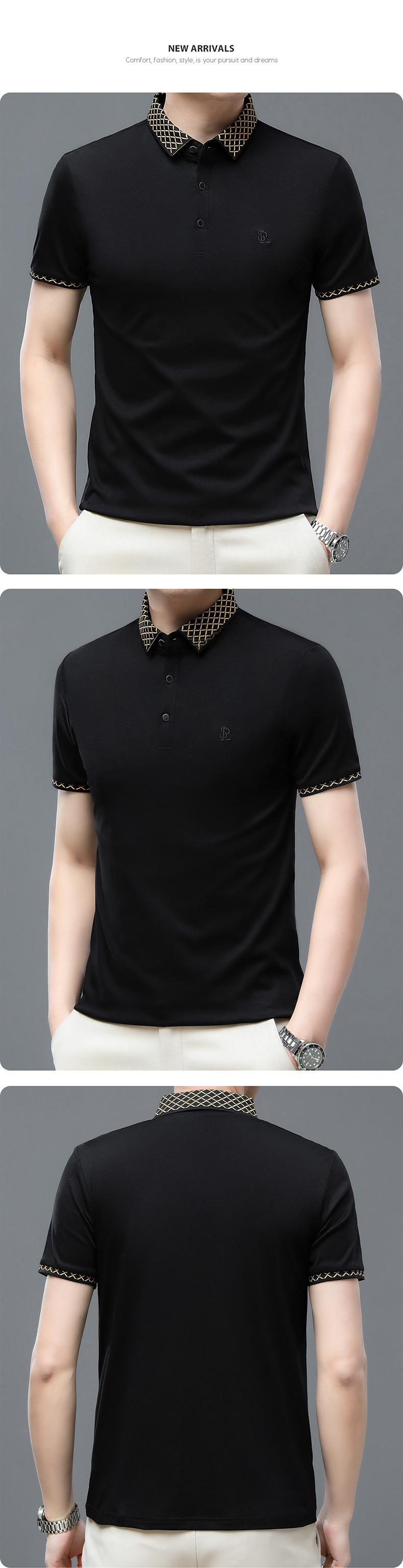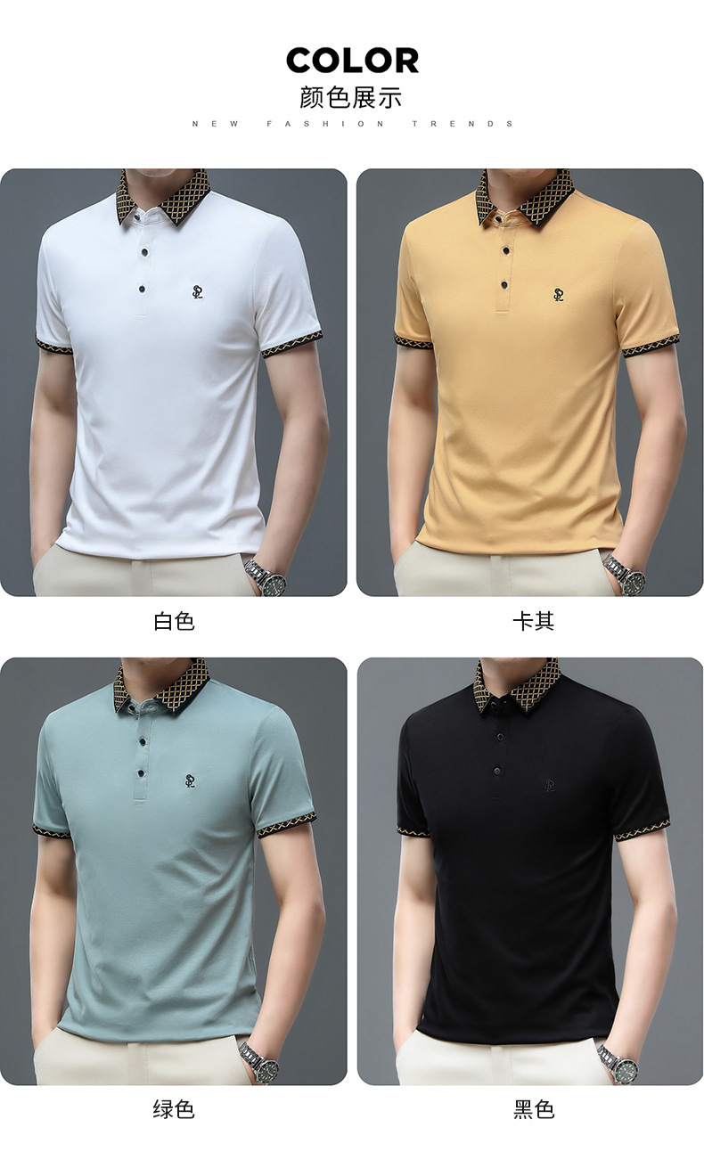 夏季新款纯棉短袖宽松男T恤轻熟休闲薄款透气字母刺绣polo衫男