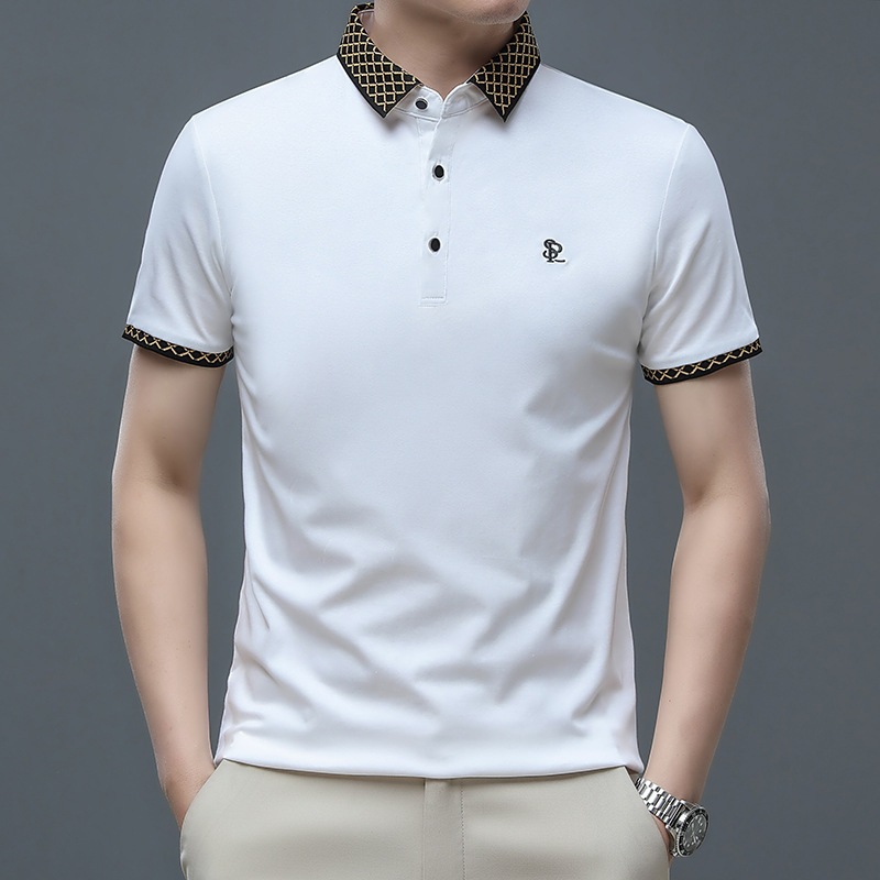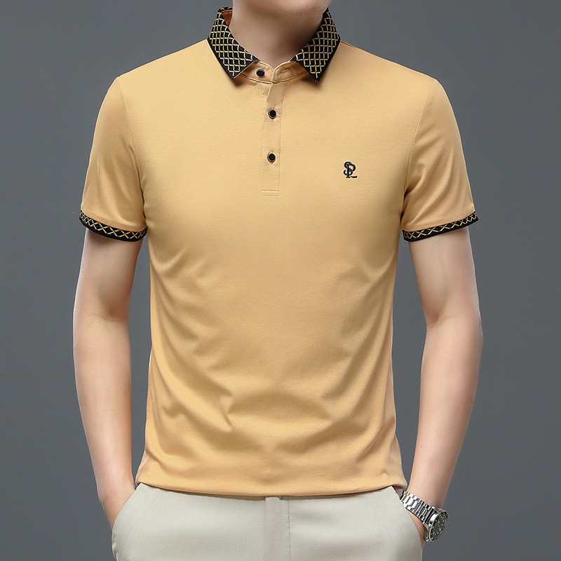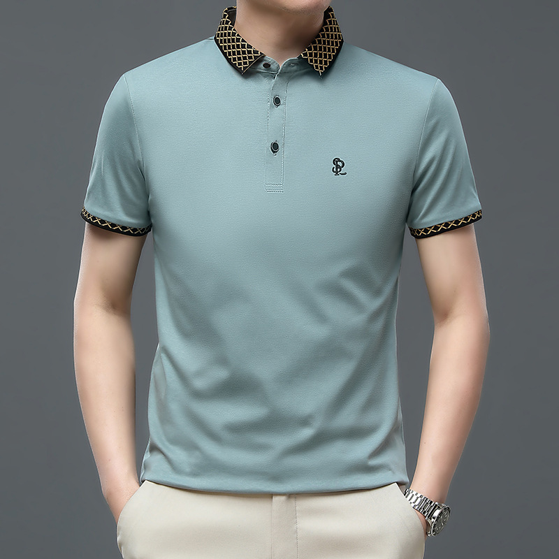 여름 새로운 면 반팔 느슨한 남성 티셔츠 라이트 성숙한 캐주얼 얇은 통기성 편지 수 놓은 폴로 셔츠