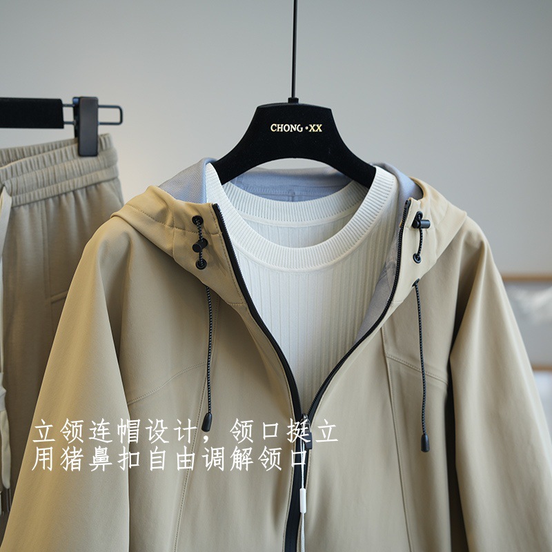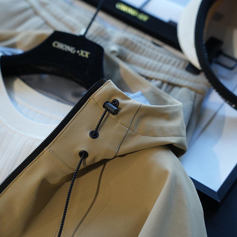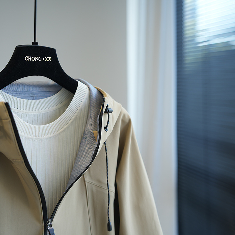 立领连帽设计,领口挺立